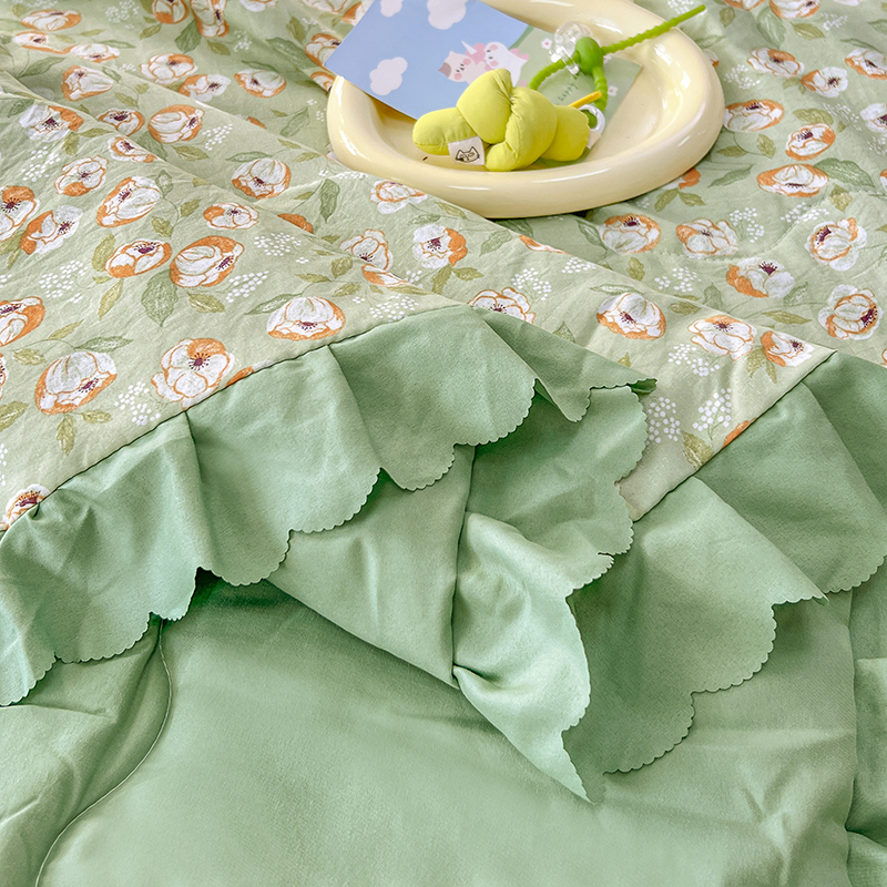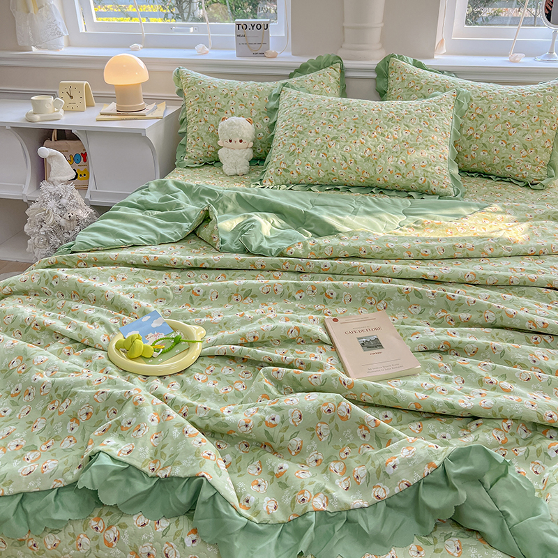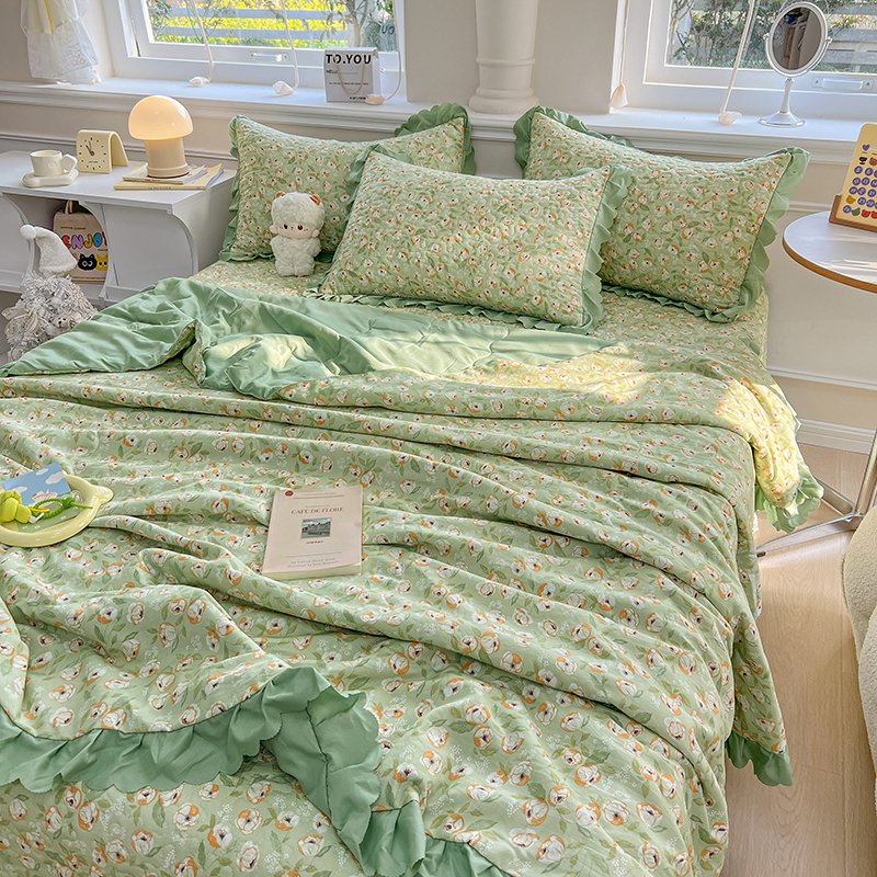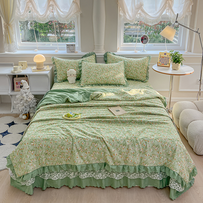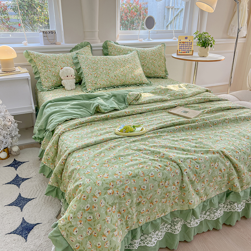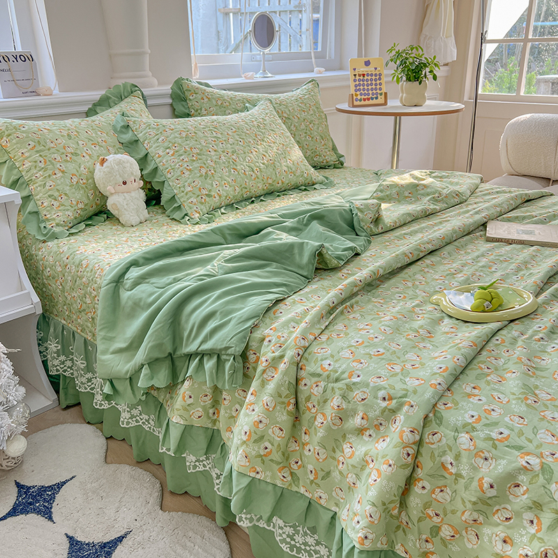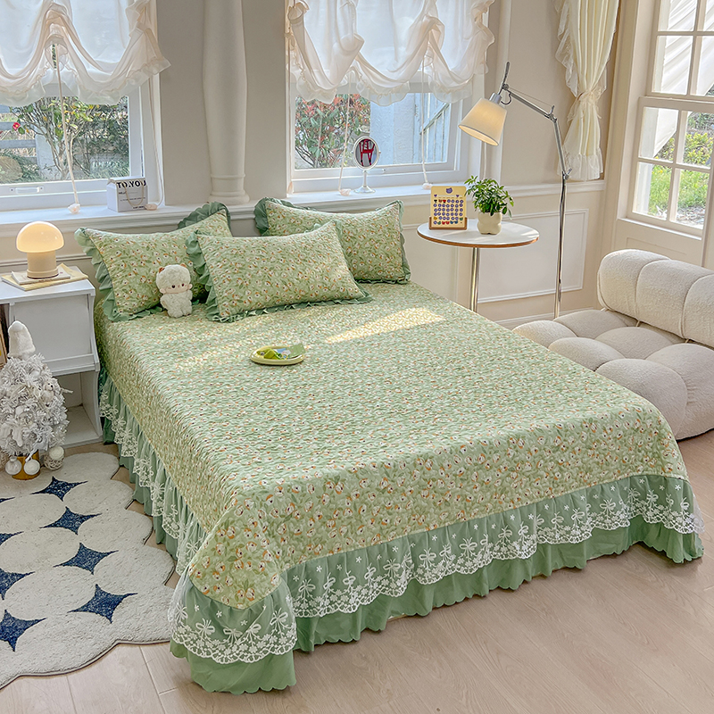 当前位置: 91家纺网 > 商品网购 > 床品套件 > 四件套 > 夏被四件套 > 雅眠居 2024直播爆款泡泡棉床盖款夏被四件套双层蕾丝花边夹棉床裙款三件套 春天里