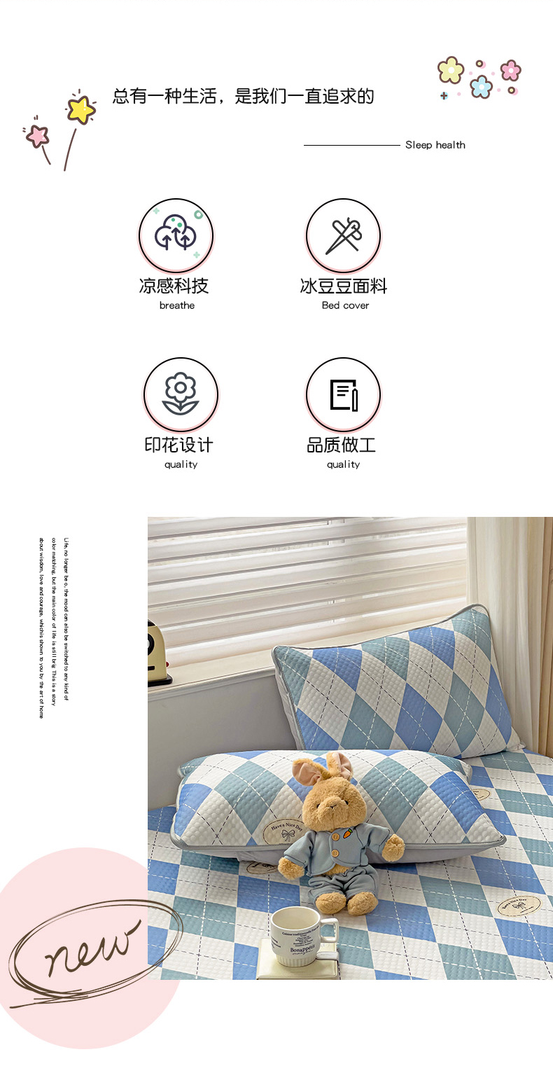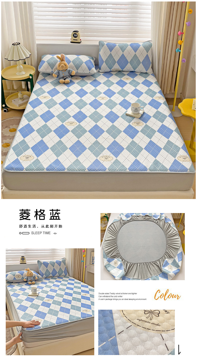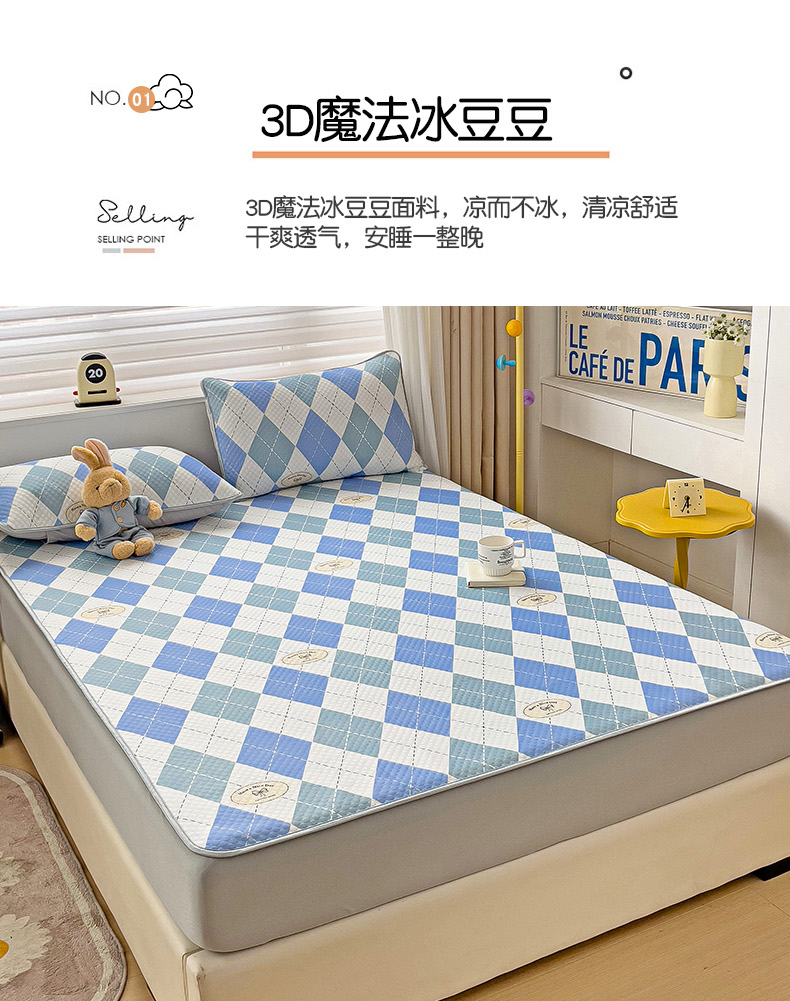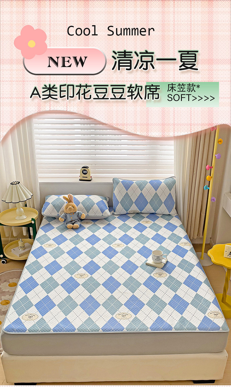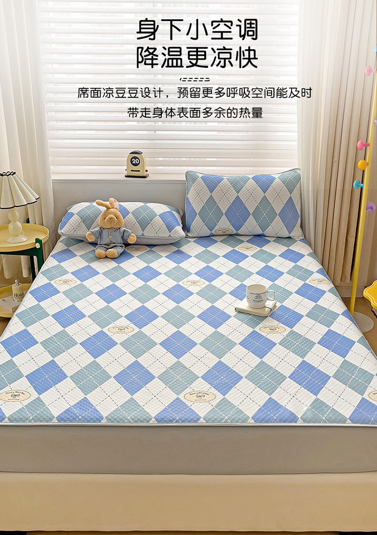 当前位置: 91家纺网 > 商品网购 > 床上用品 > 凉席 > 其他凉席 > 大柏树 2025新款A类印花豆豆凉席 床笠款 菱格蓝