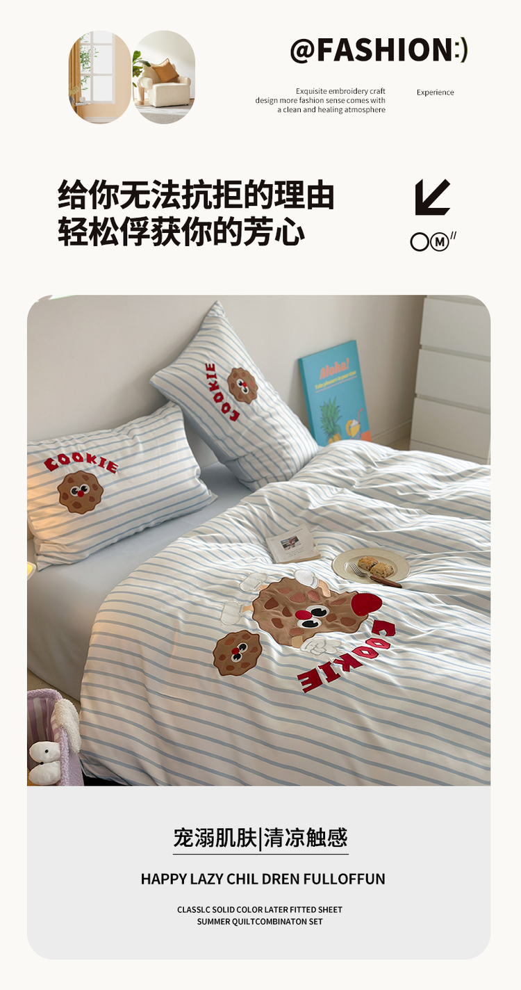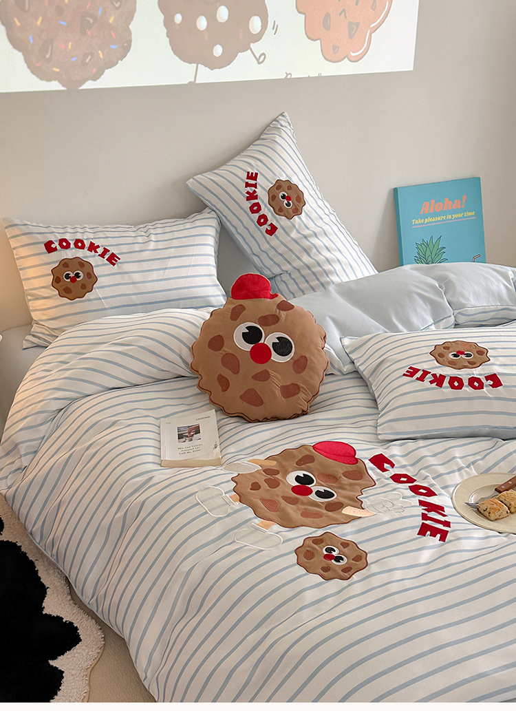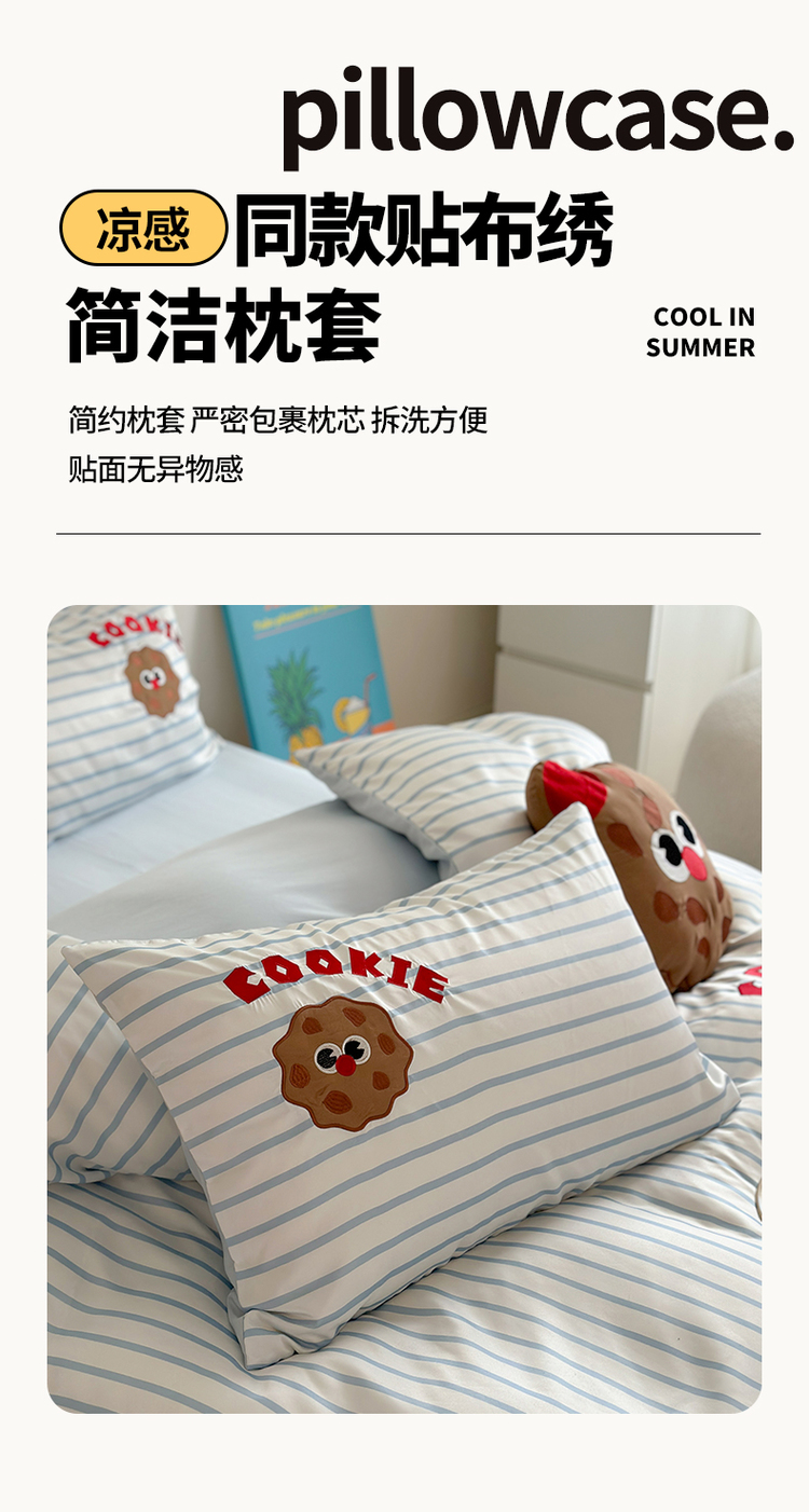 商品名称:优悦2024新款冰丝卡通贴布绣四件套 曲奇饼干-蓝