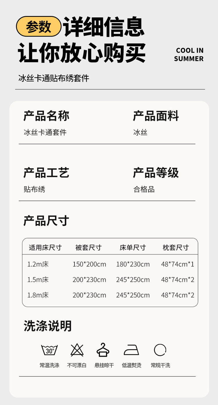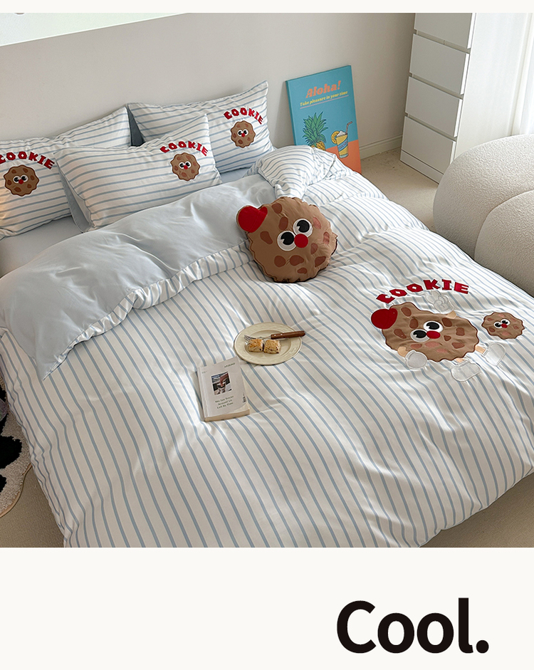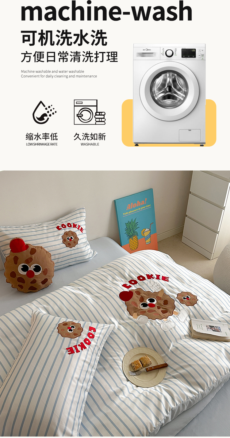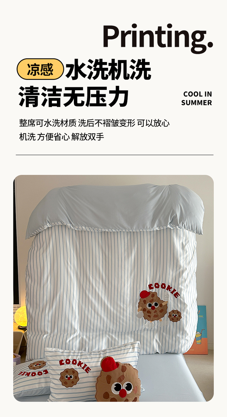 商品名称:优悦2024新款冰丝卡通贴布绣四件套 曲奇饼干-蓝