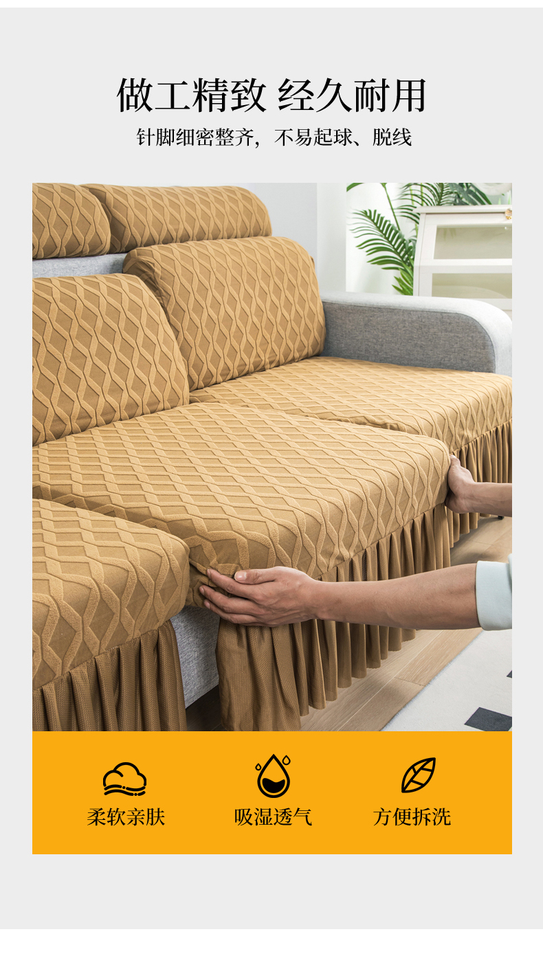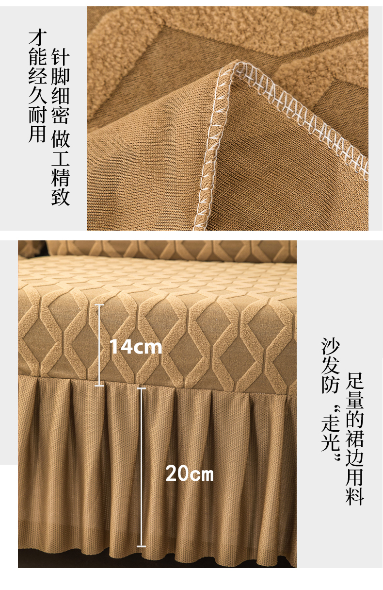 当前位置: 91家纺网 > 商品网购 > 居家布艺 > 坐垫/椅垫/沙发垫 > 沙发垫 > 千彤沙发垫 2024新款裙边款拉花绒菱形格系列沙发笠 咖色