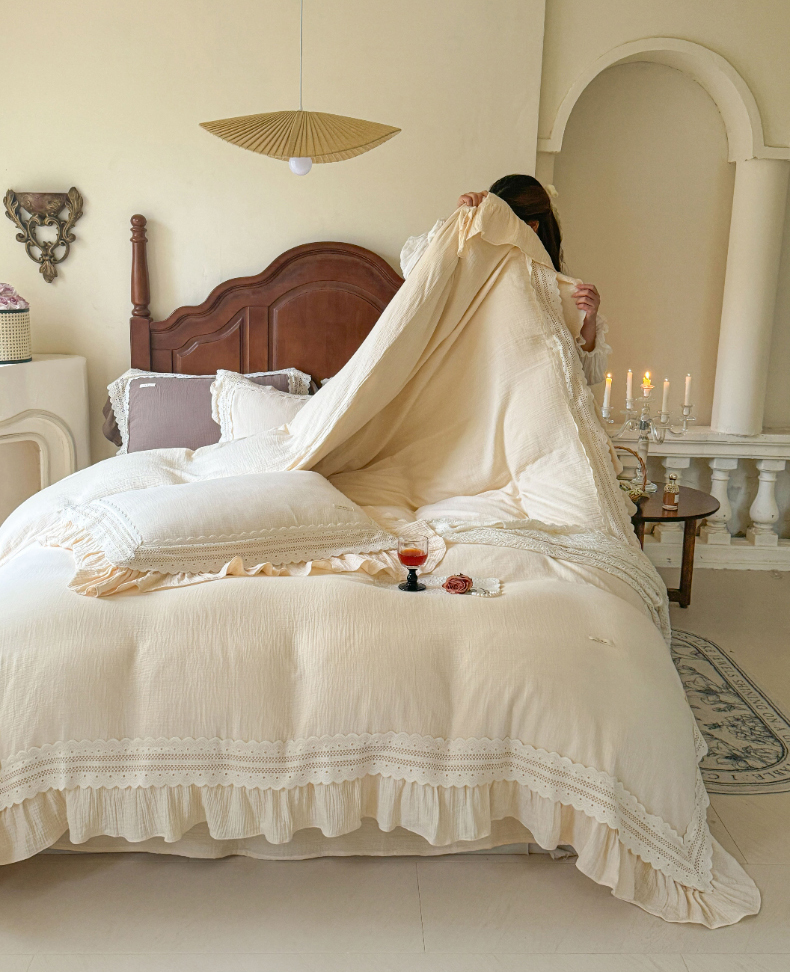 (总)玛奇朵 2025秋冬新品韩国色织A类三层皱皱纱系列四件套,山屿,时序,巷往
