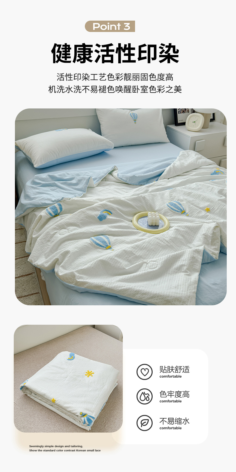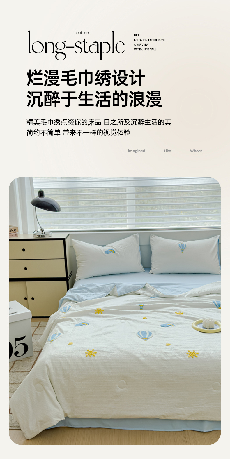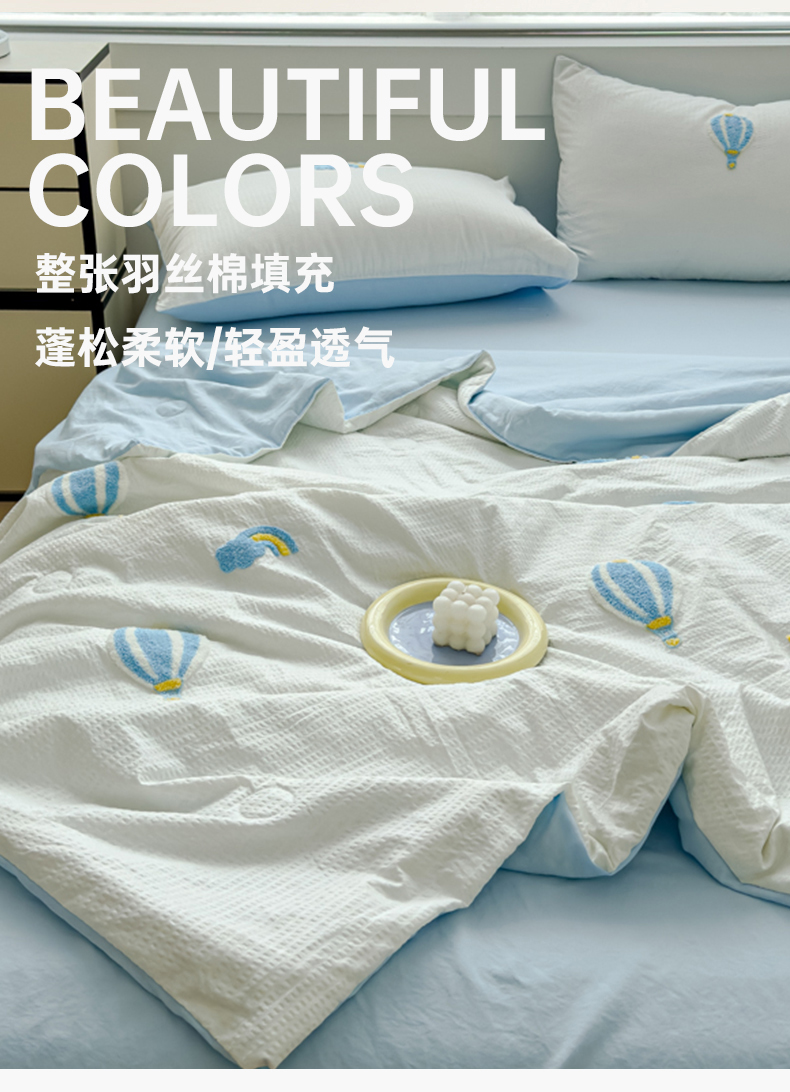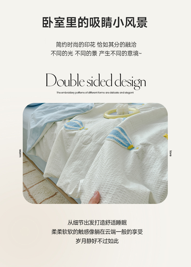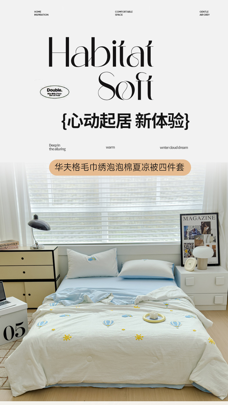 • 91家纺网 家纺一手货源 找家纺 红嘴企鹅 2025新款华夫格水洗棉毛巾绣夏被四件套 华夫格热气球