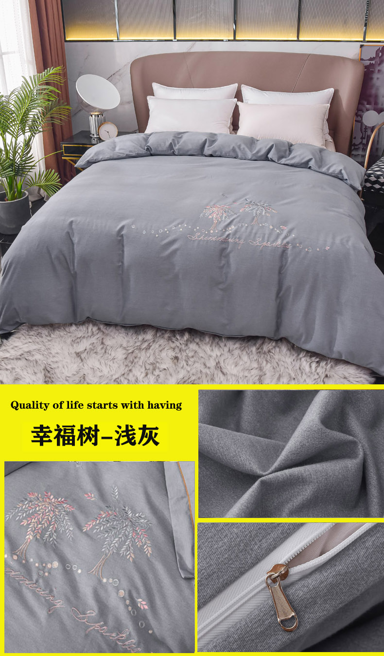 • 91家纺网 家纺一手货源 找家纺 艾迪尚家纺 2025新款纯色生态磨毛绣花单被套 幸福树-浅灰