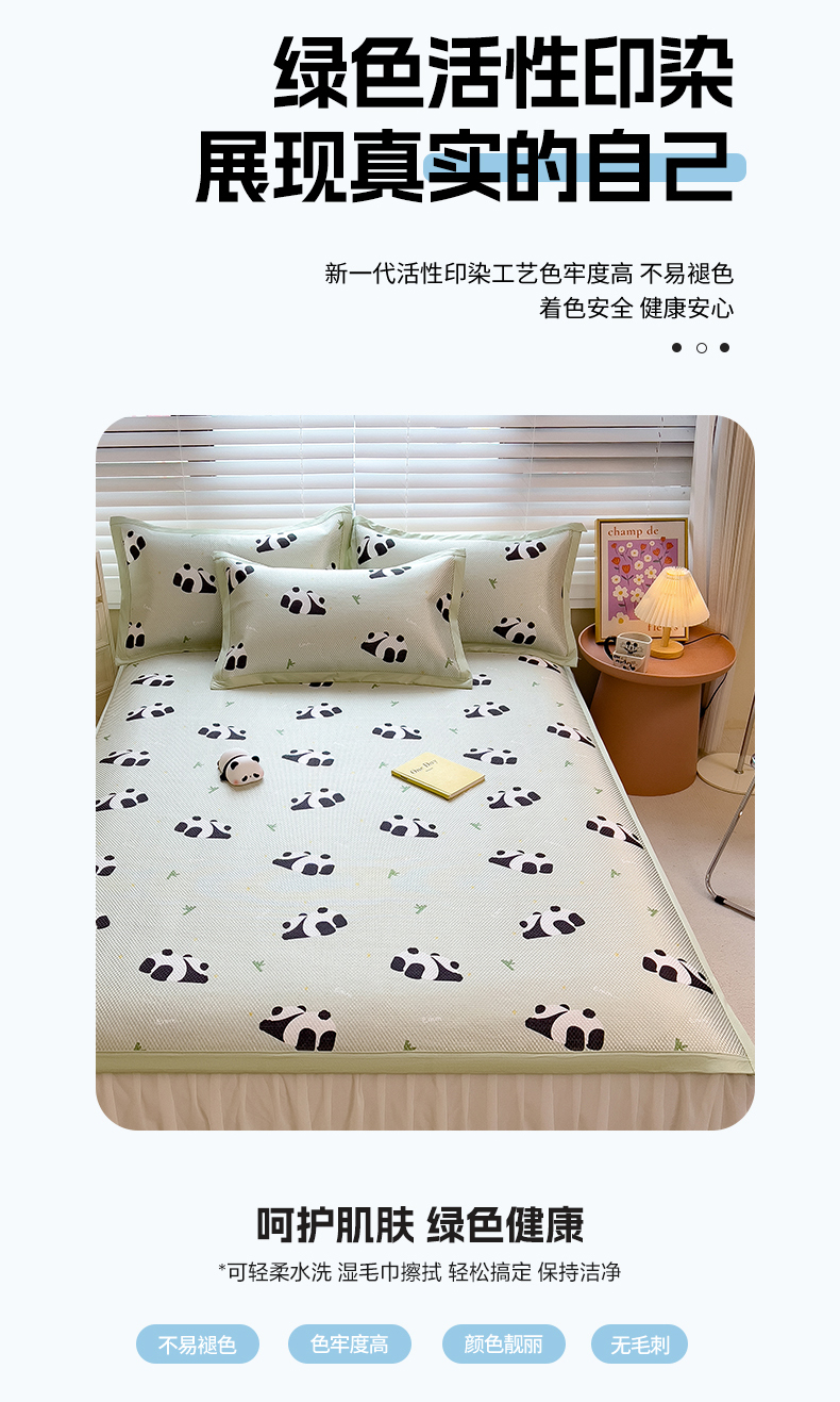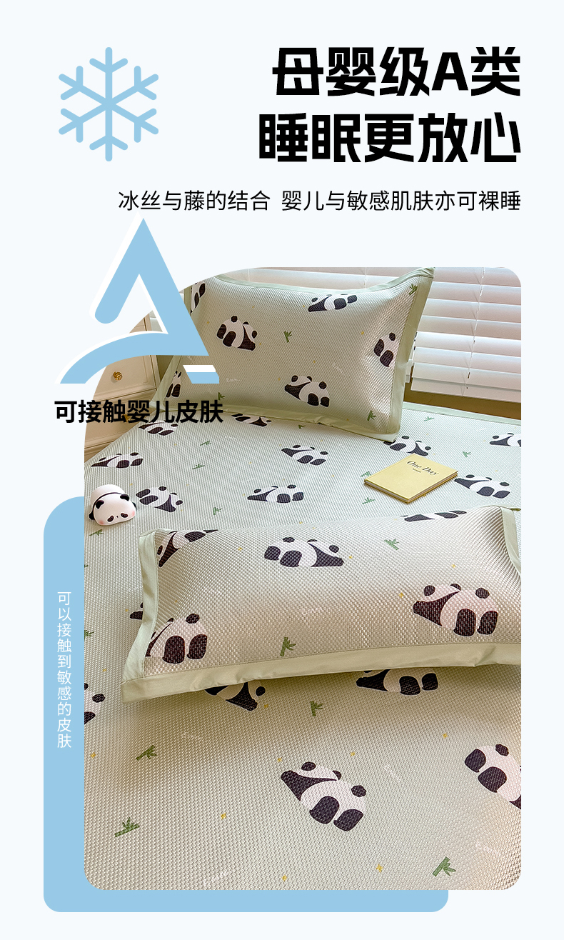 商品名称:布卢姆床垫 新款A类数码印花冰藤席夏凉席--床席款 熊猫乐乐