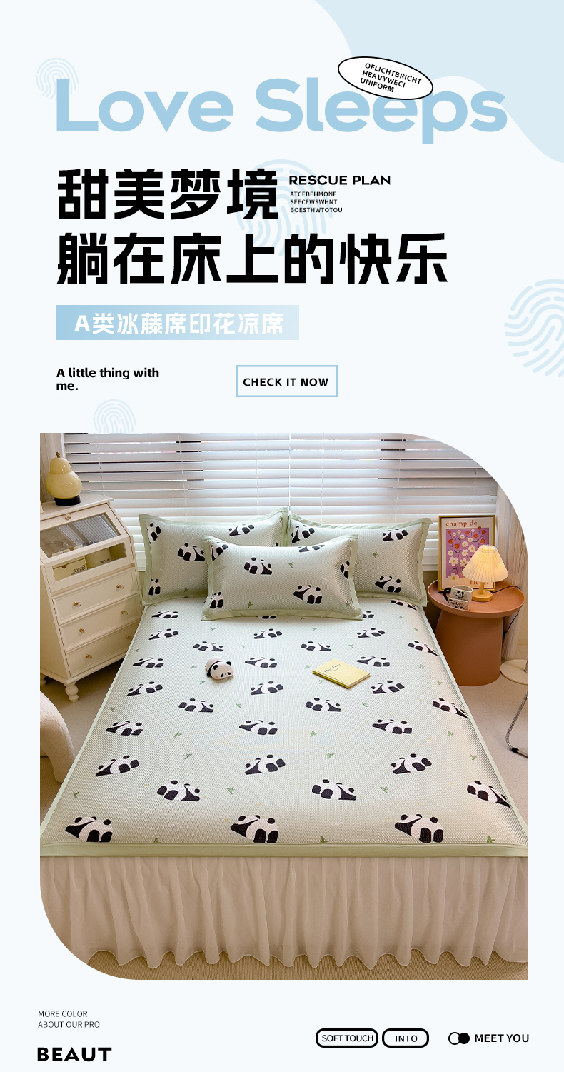 布卢姆床垫 新款A类数码印花冰藤席夏凉席--床席款 熊猫乐乐