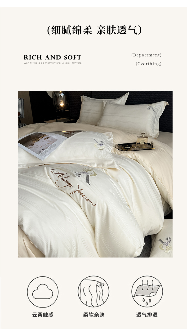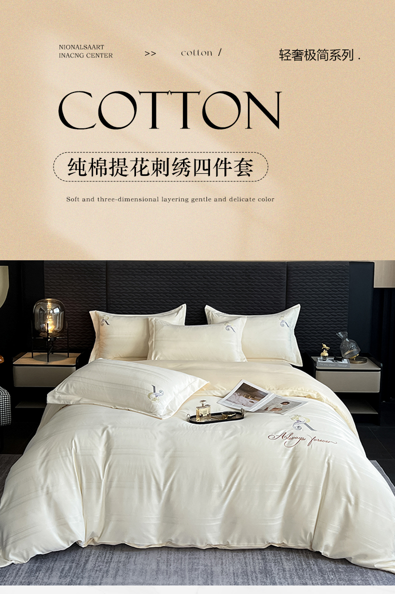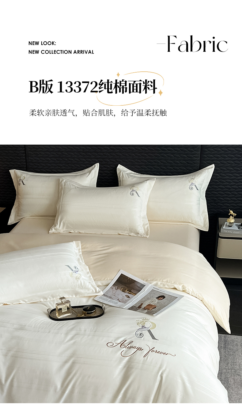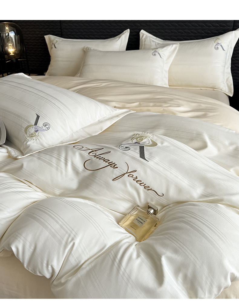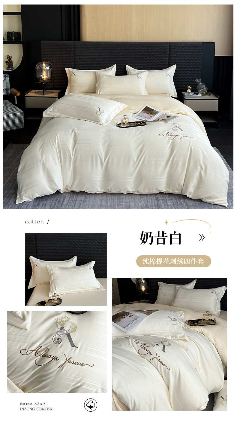 当前位置: 91家纺网 > 商品网购 > 床品套件 > 四件套 > 全棉普通四件套 > 韩秀家纺 2024新款纯棉刺绣提花四件套-遇见 遇见-奶昔白
