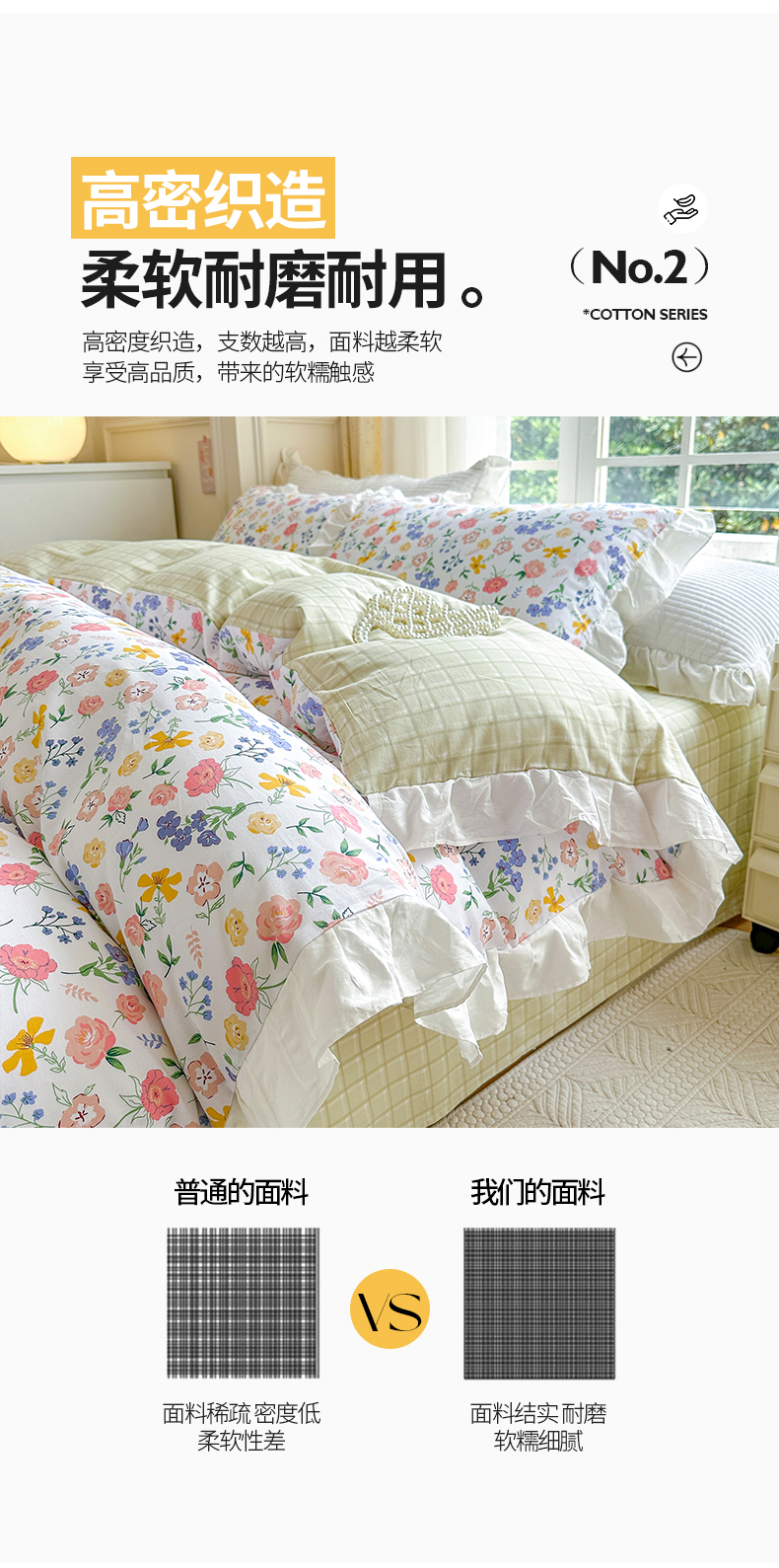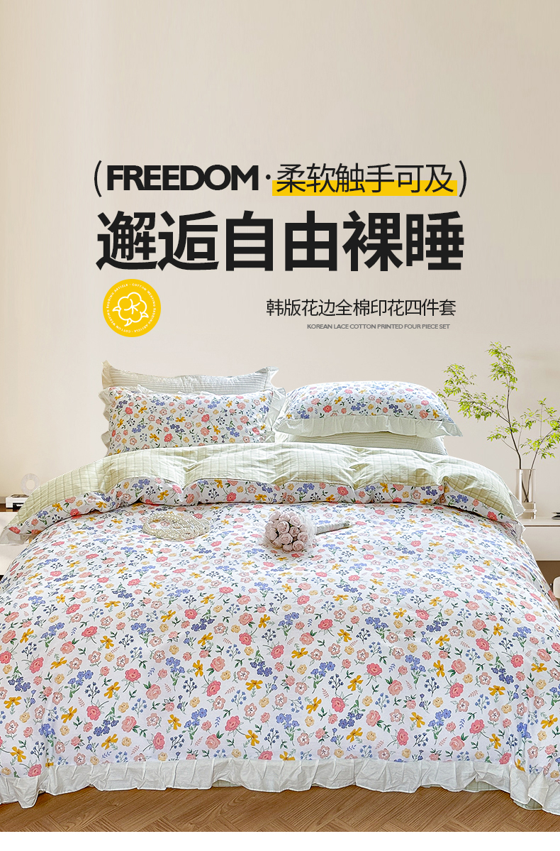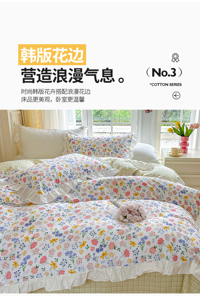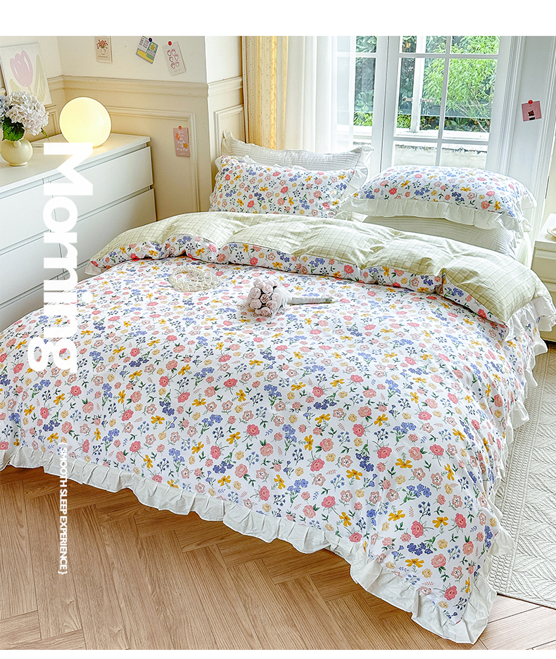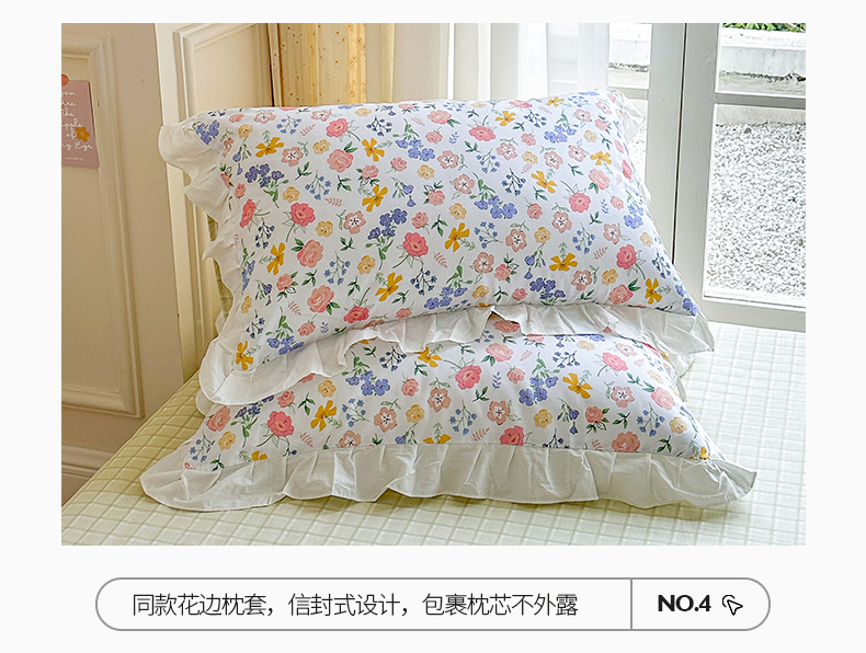 商品名称:清雅福 2024新款喷气全棉13372韩版花边款单被套 初遇