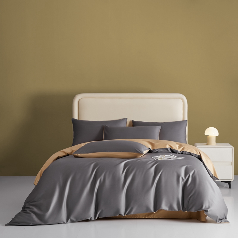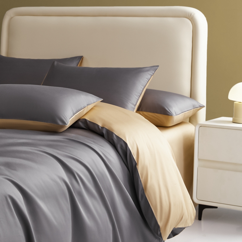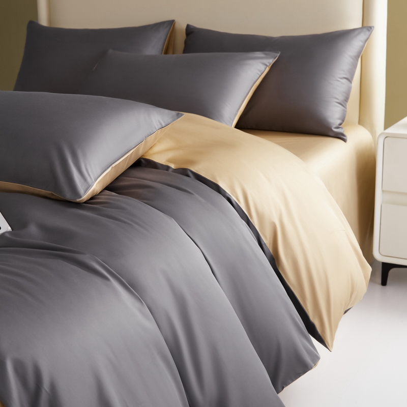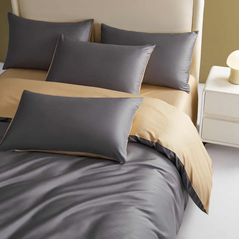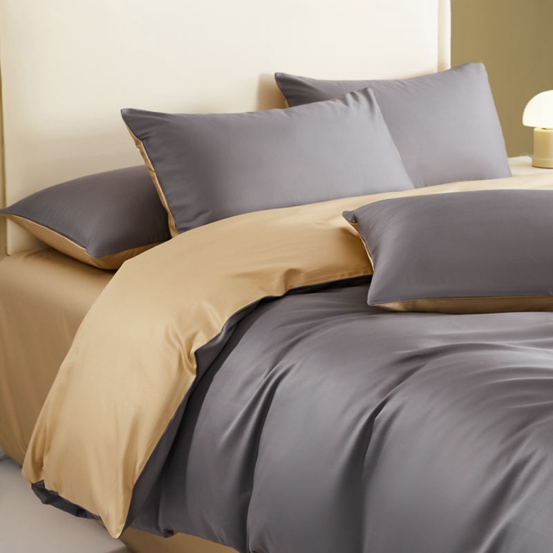 当前位置: 91家纺网 > 商品网购 > 床品套件 > 四件套 > 长绒棉四件套 > 莱阁亿 2025新款60支长绒棉纯色拼色四件套 帝都灰+香槟