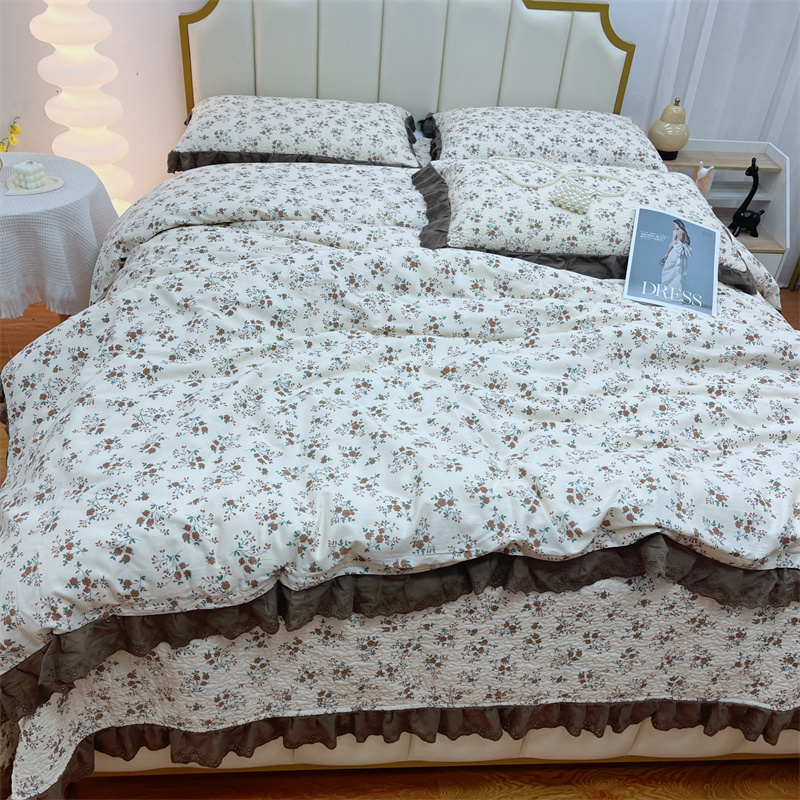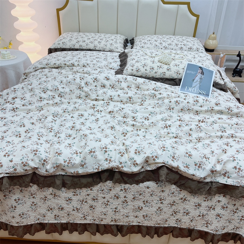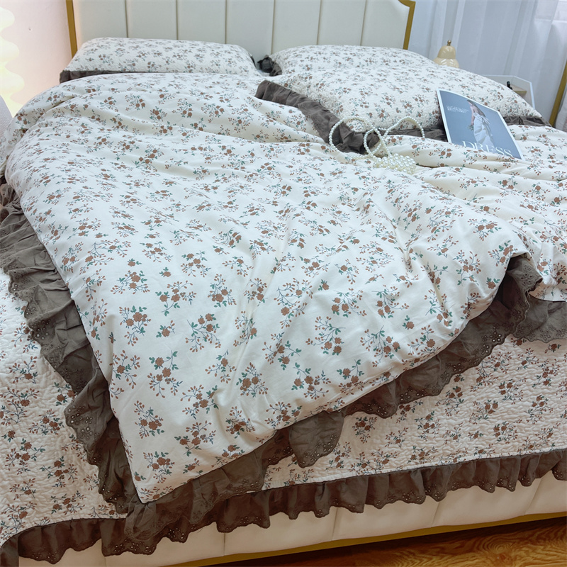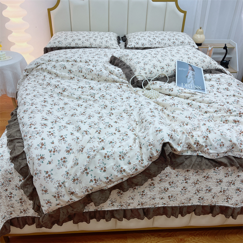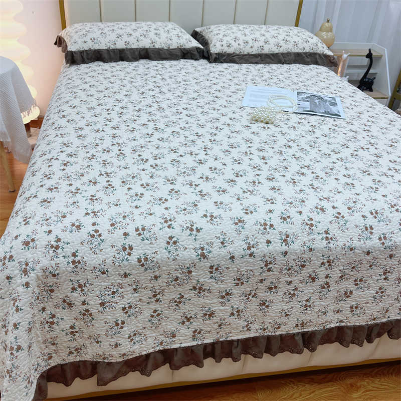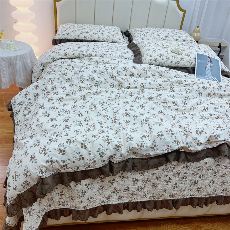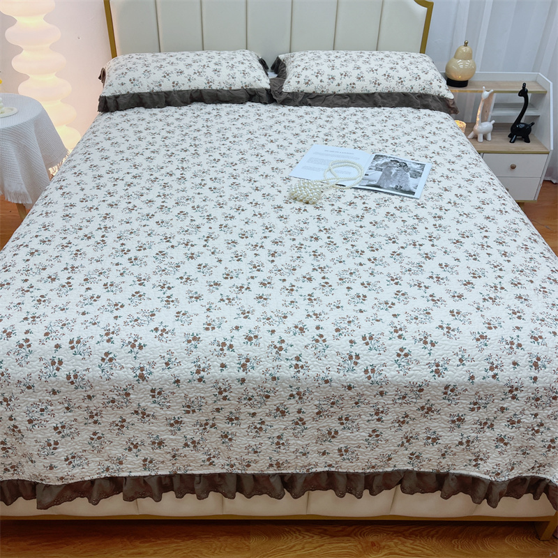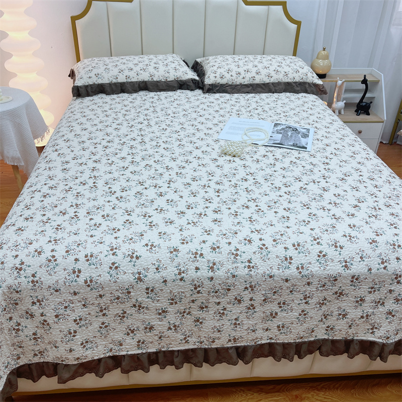 暖居 2024新款砂洗棉花被套全棉床盖四件套绗缝夹棉纯棉床盖三件套墨尔本