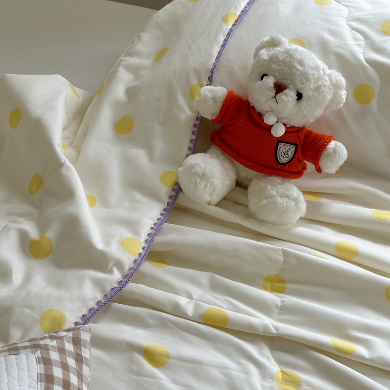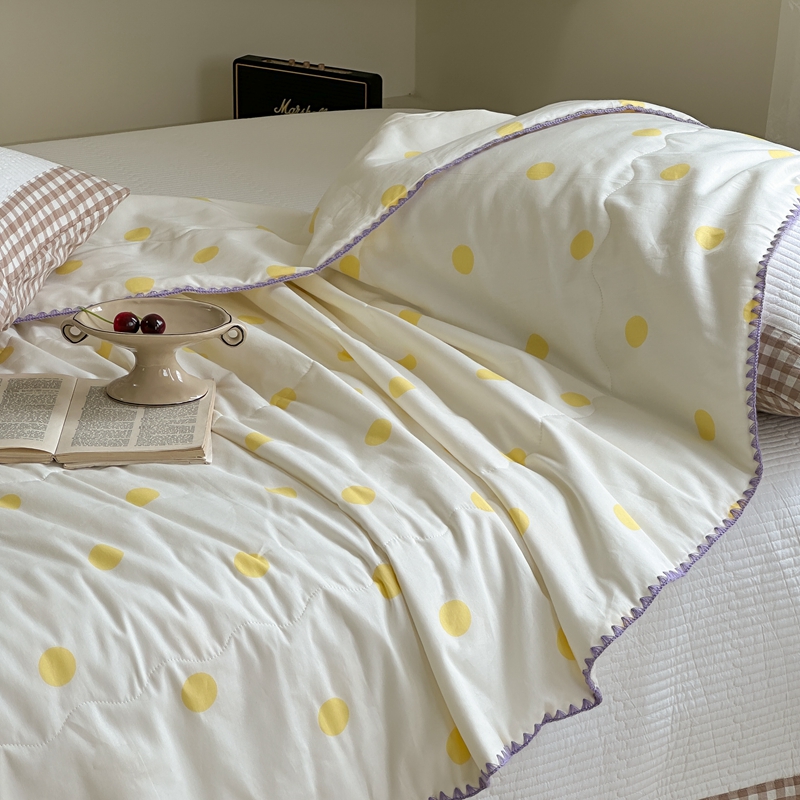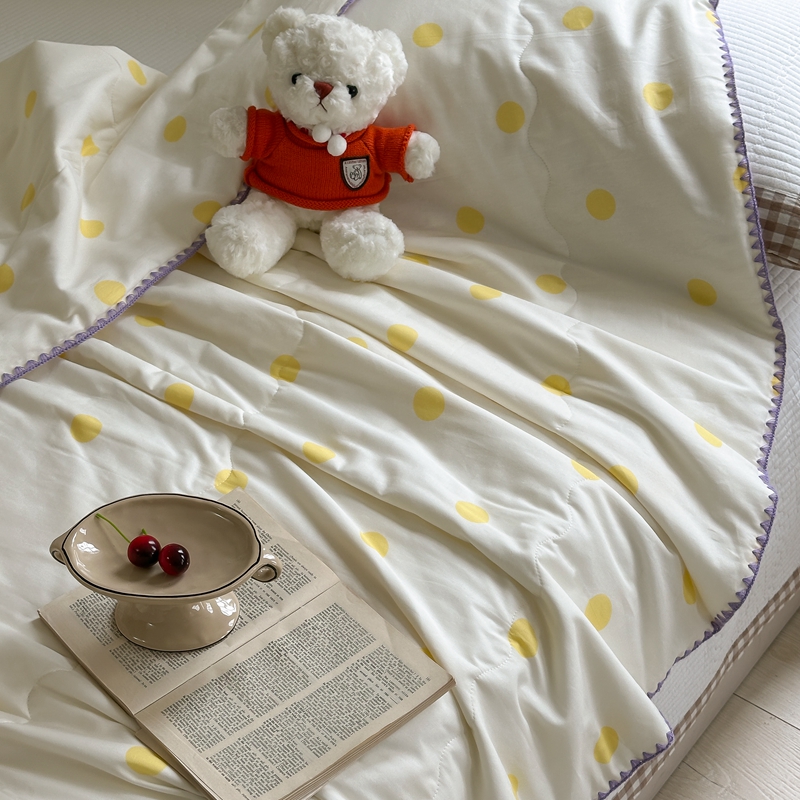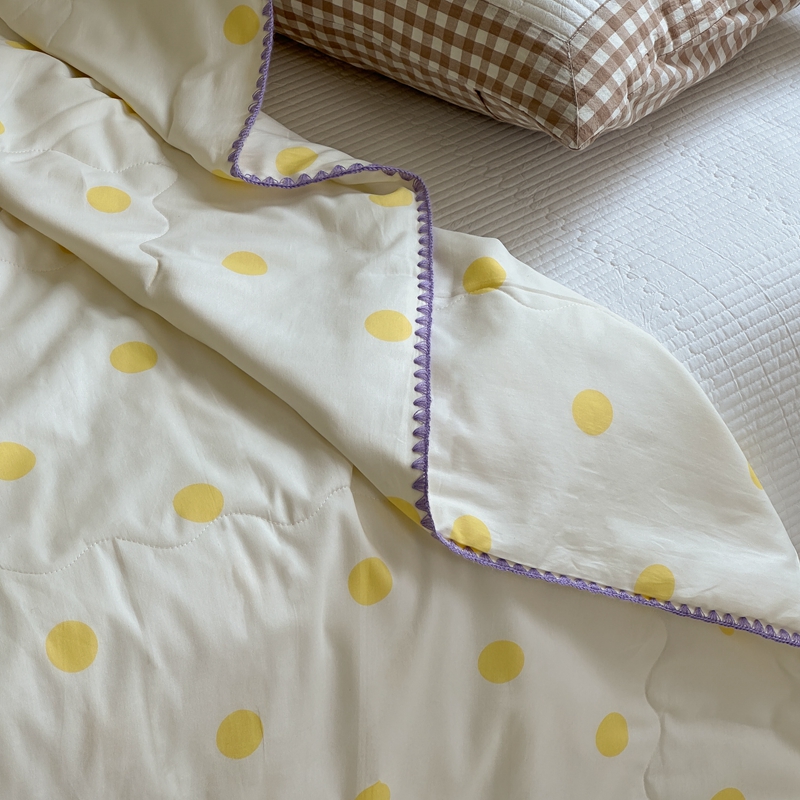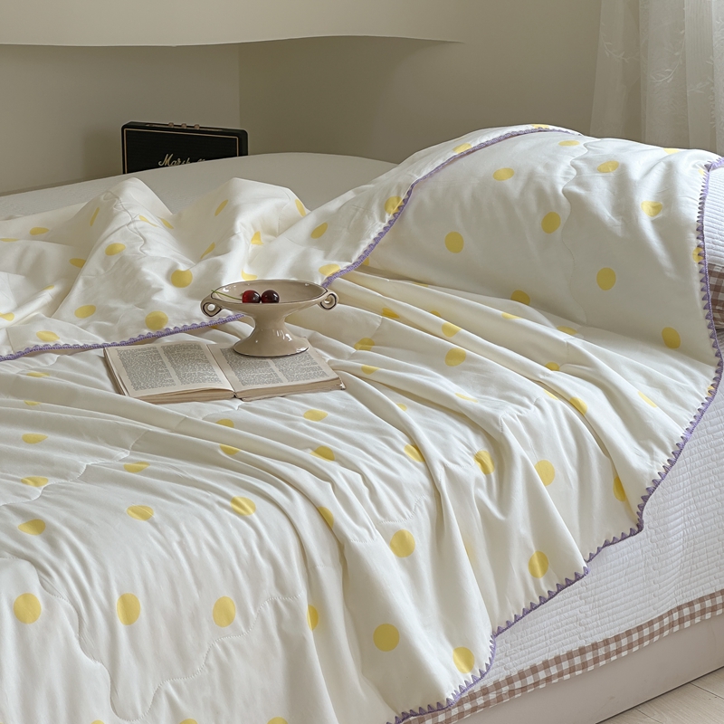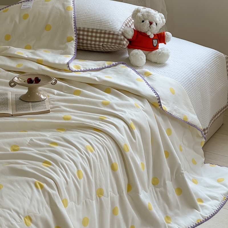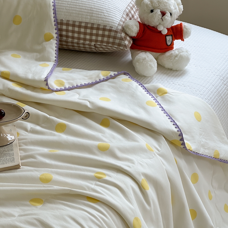 商品名称:洋铭区 2024新款贝壳边全棉印花夏被 黄小圆