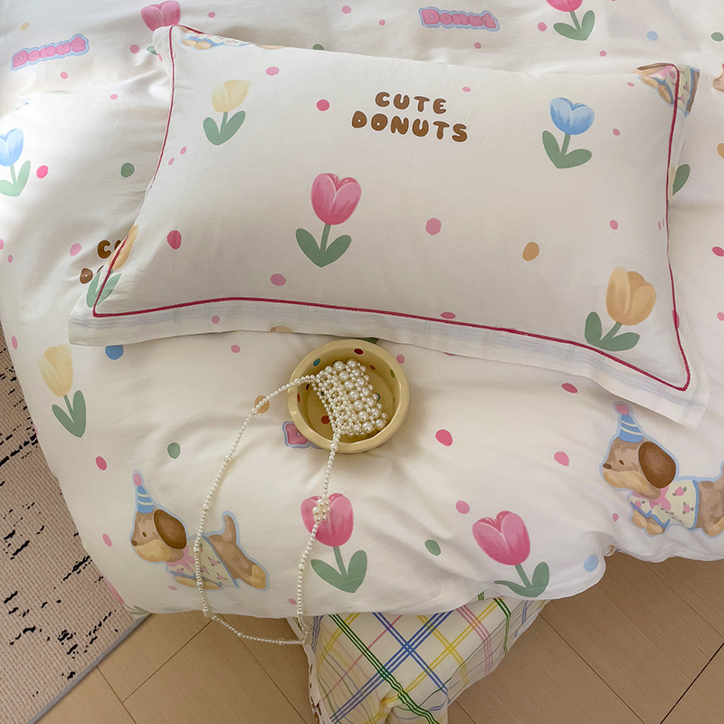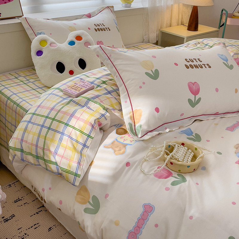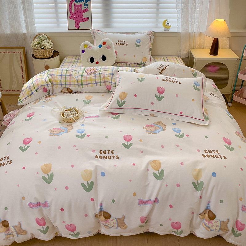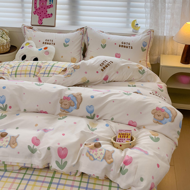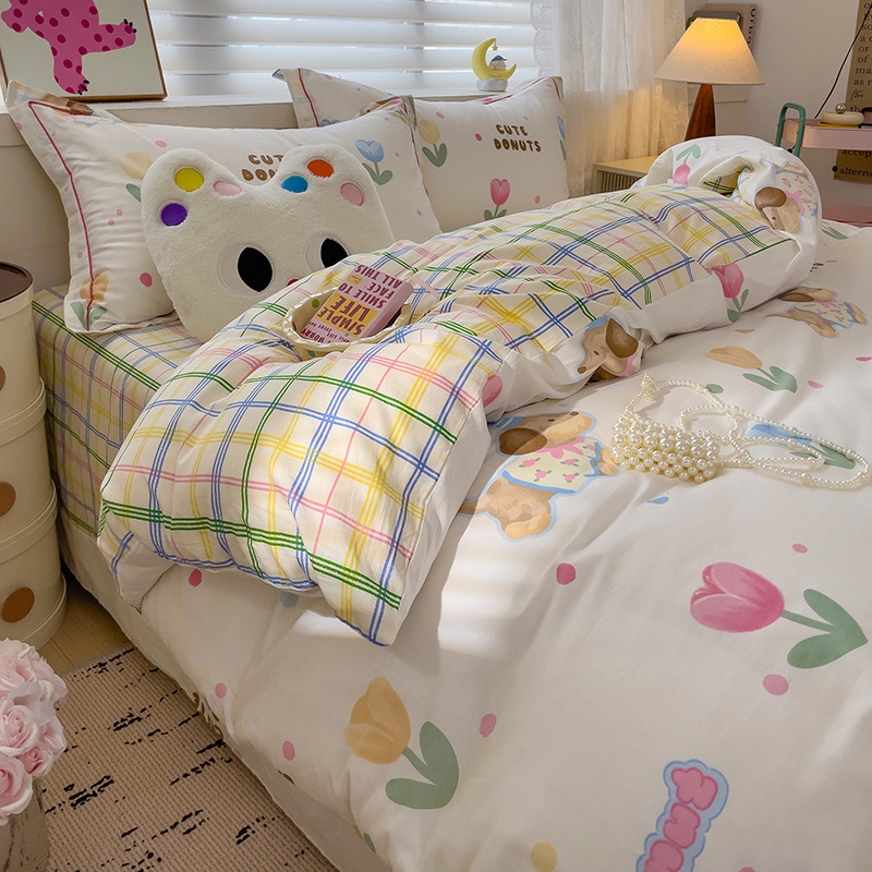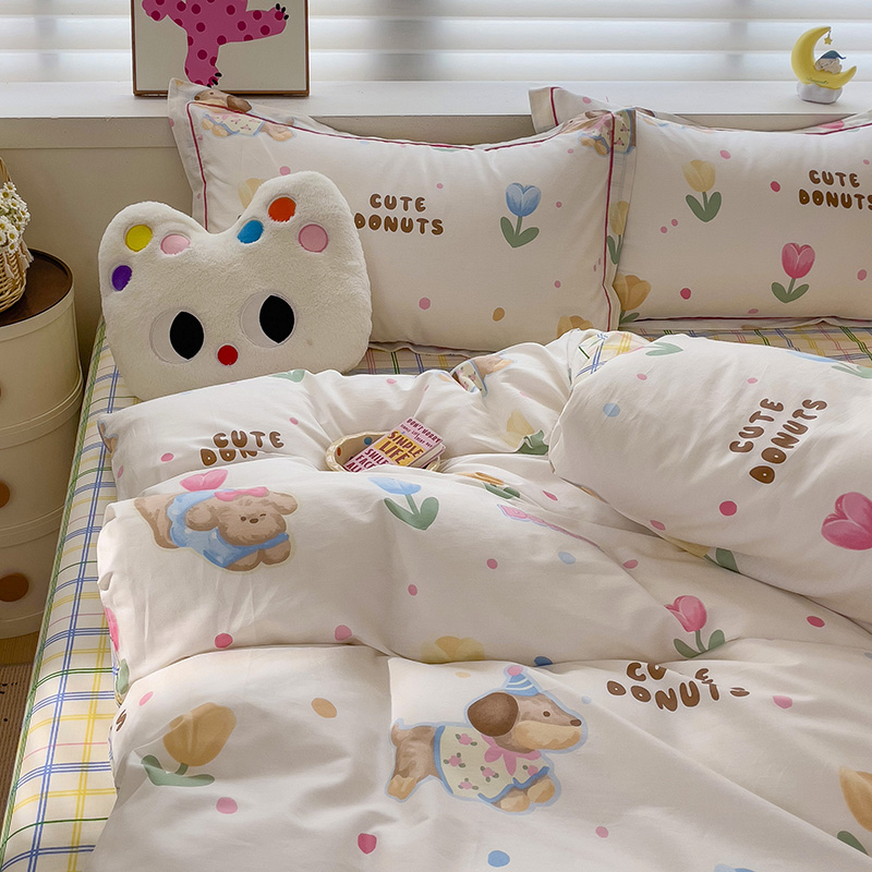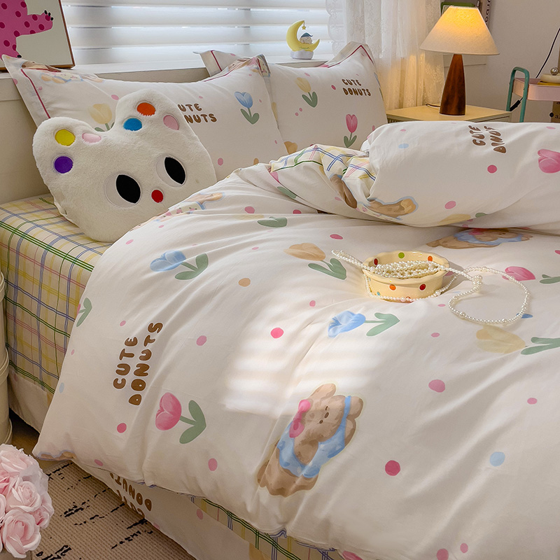 商品名称:乐童 2024新款直播爆款13070纯棉印花吊边款一字绣四件套-第七波 甜心玩偶