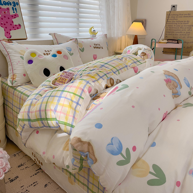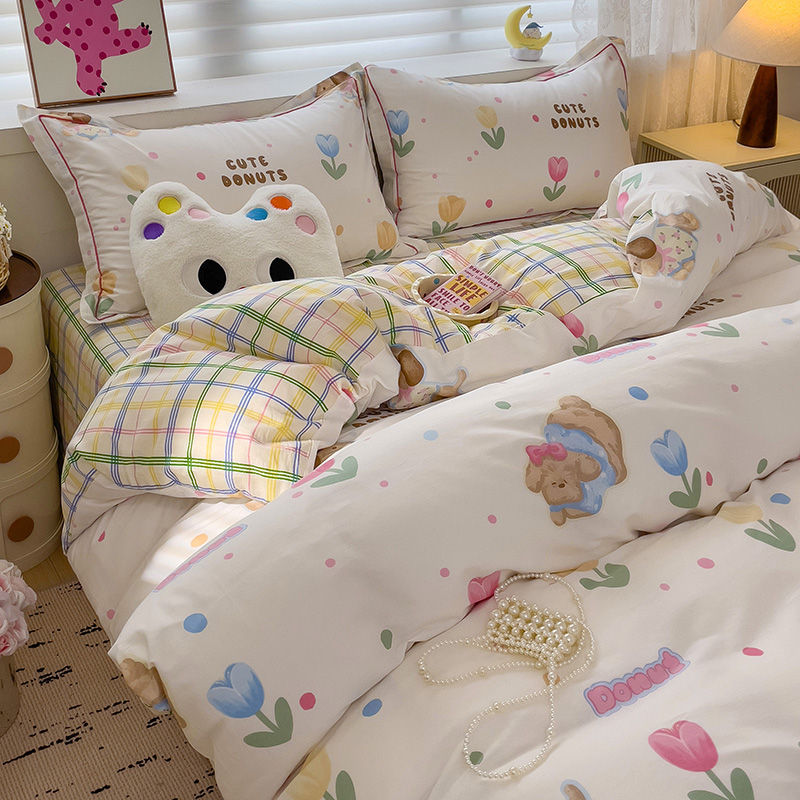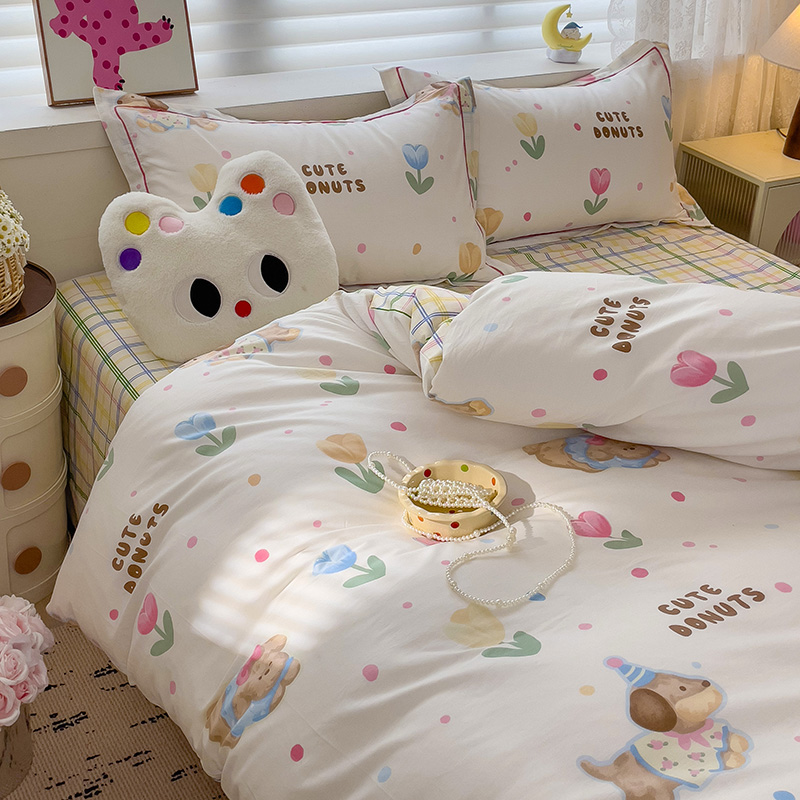 乐童 2024新款直播爆款13070纯棉印花吊边款一字绣四件套-第七波 甜心玩偶