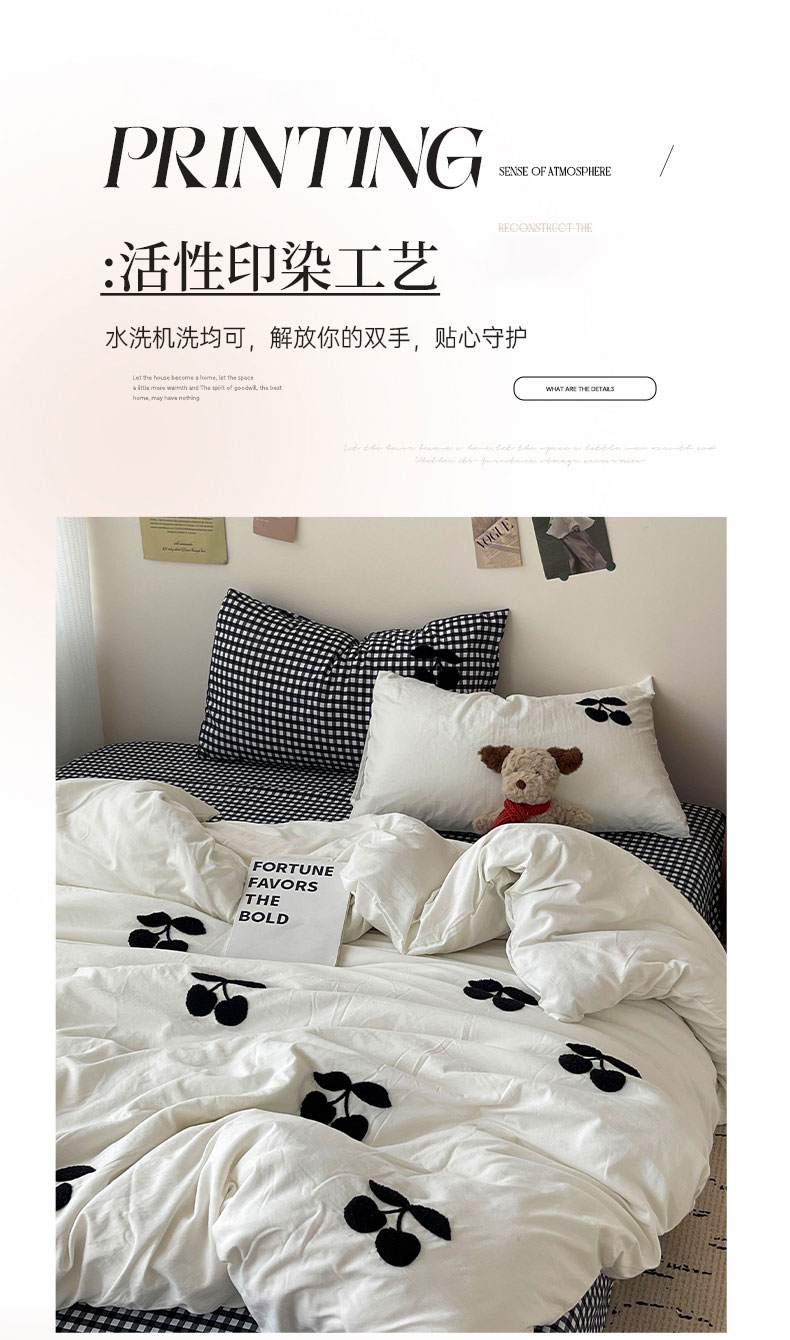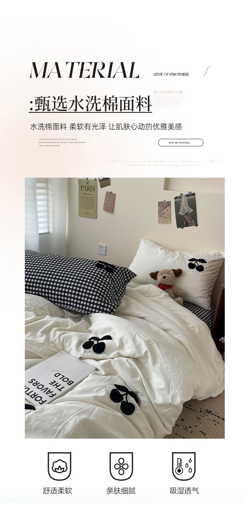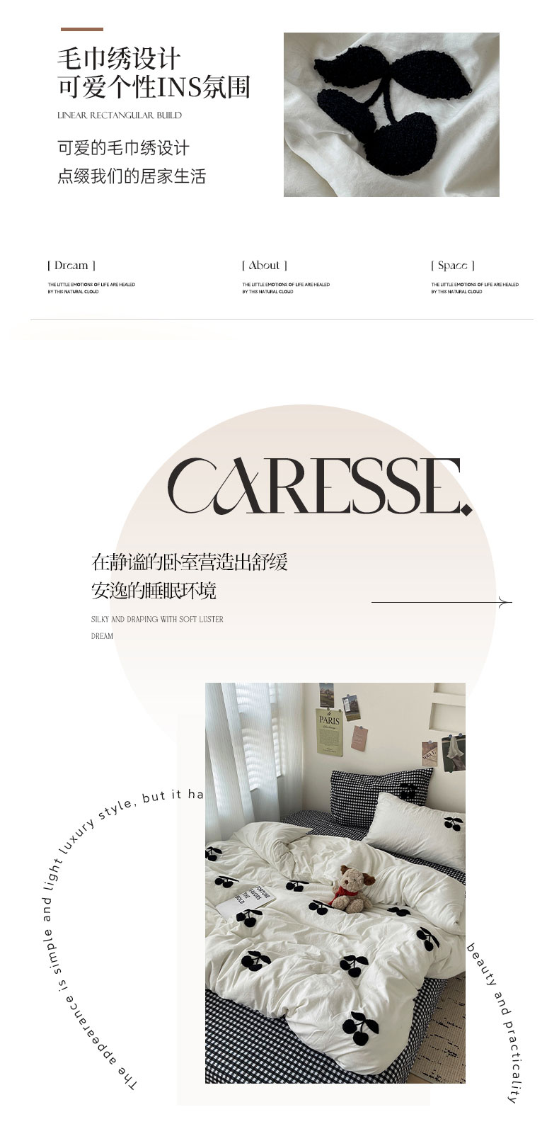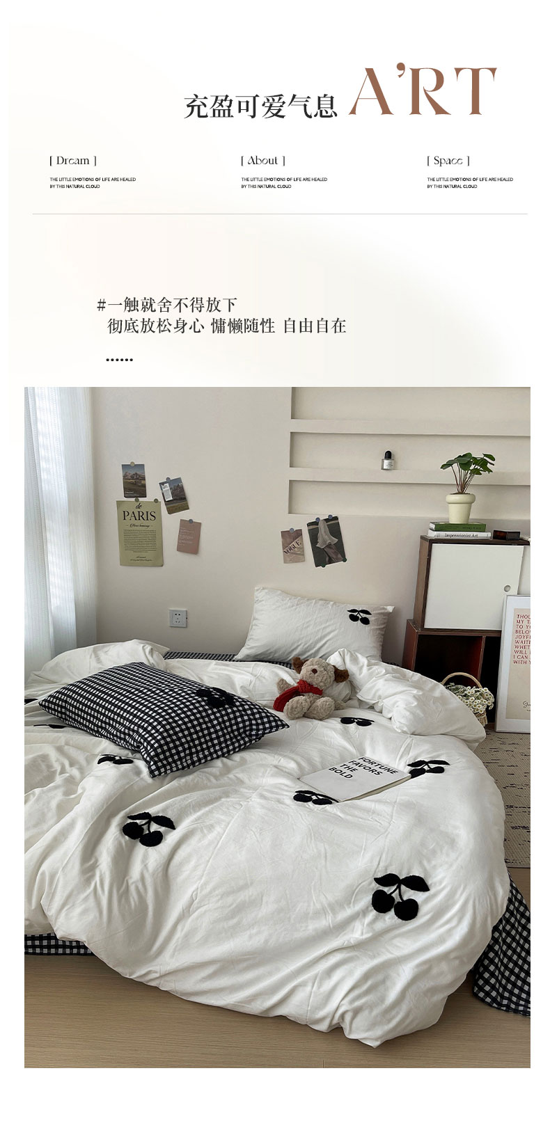 商品名称:尤米 2024新款可爱樱桃系列水洗棉毛巾绣单被套 樱桃-白格