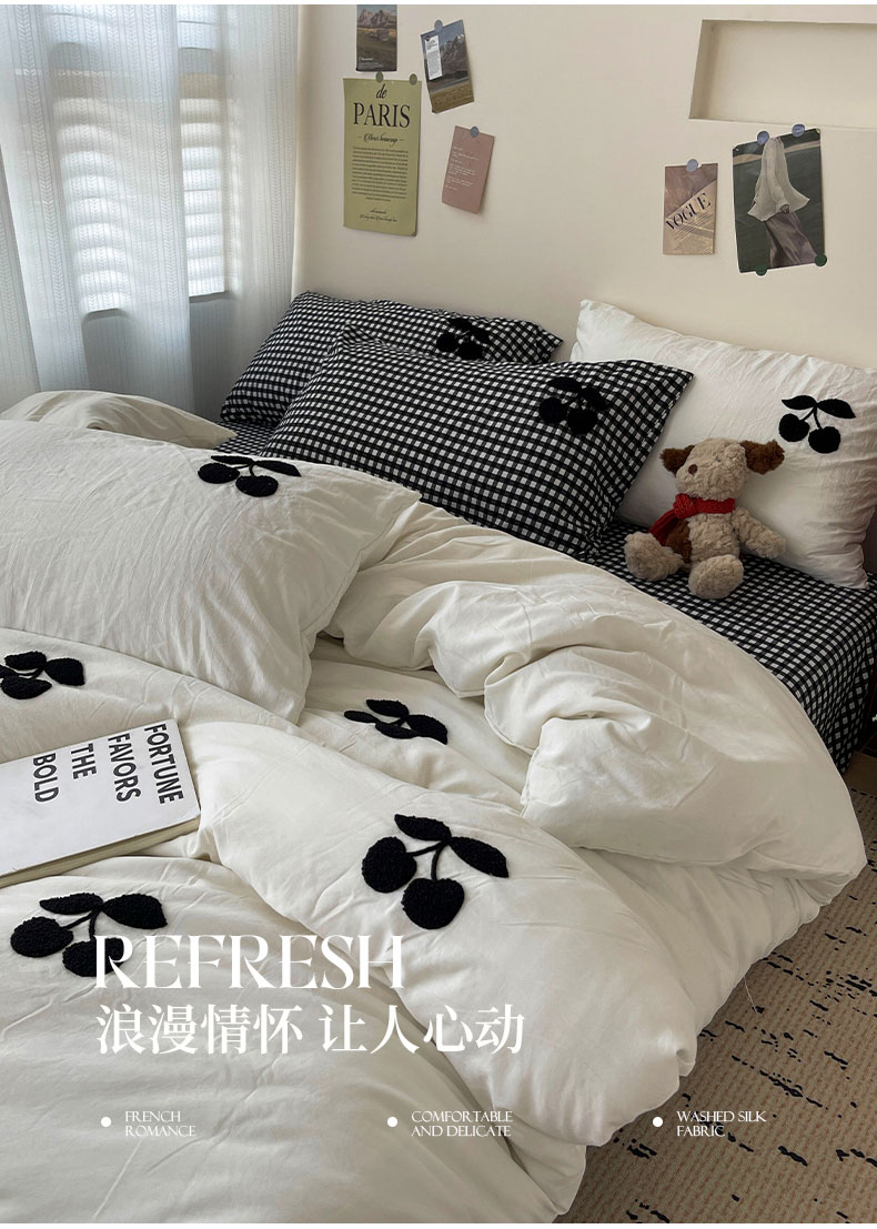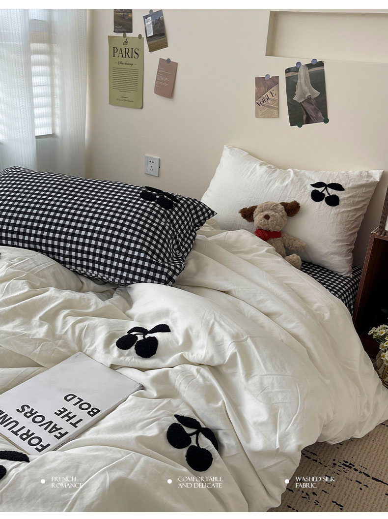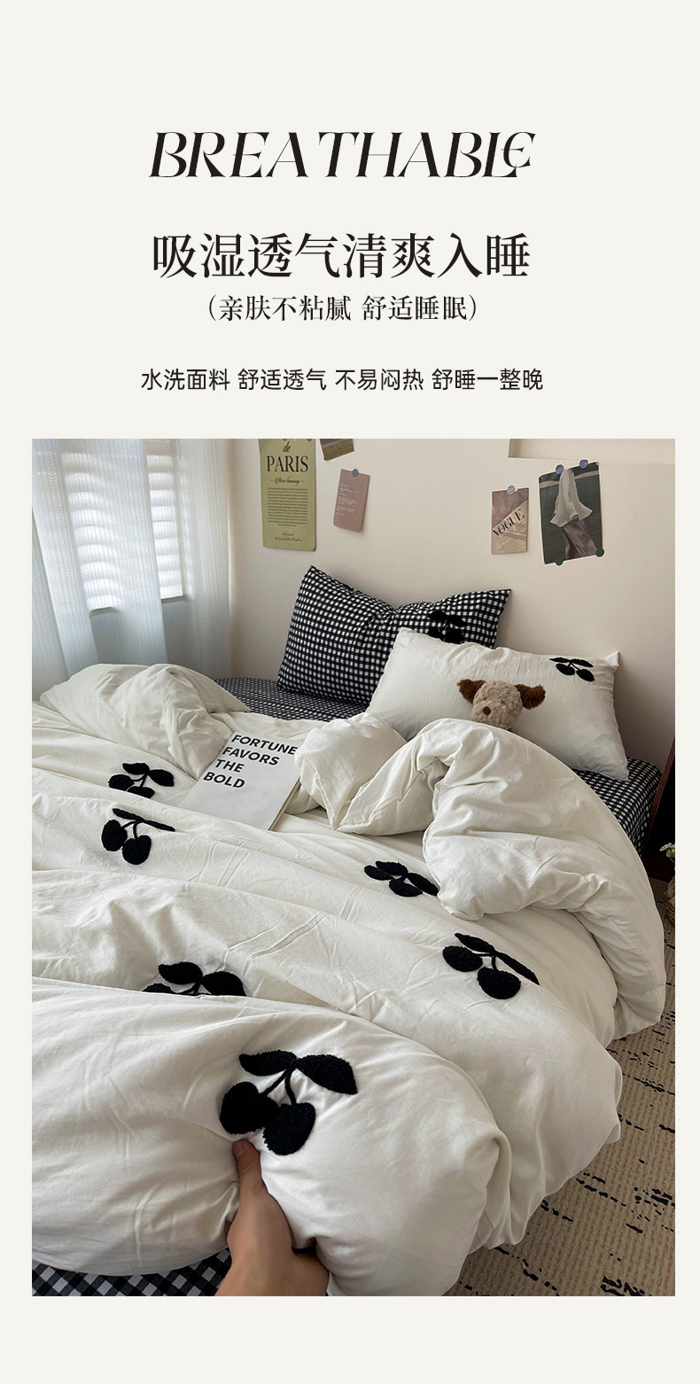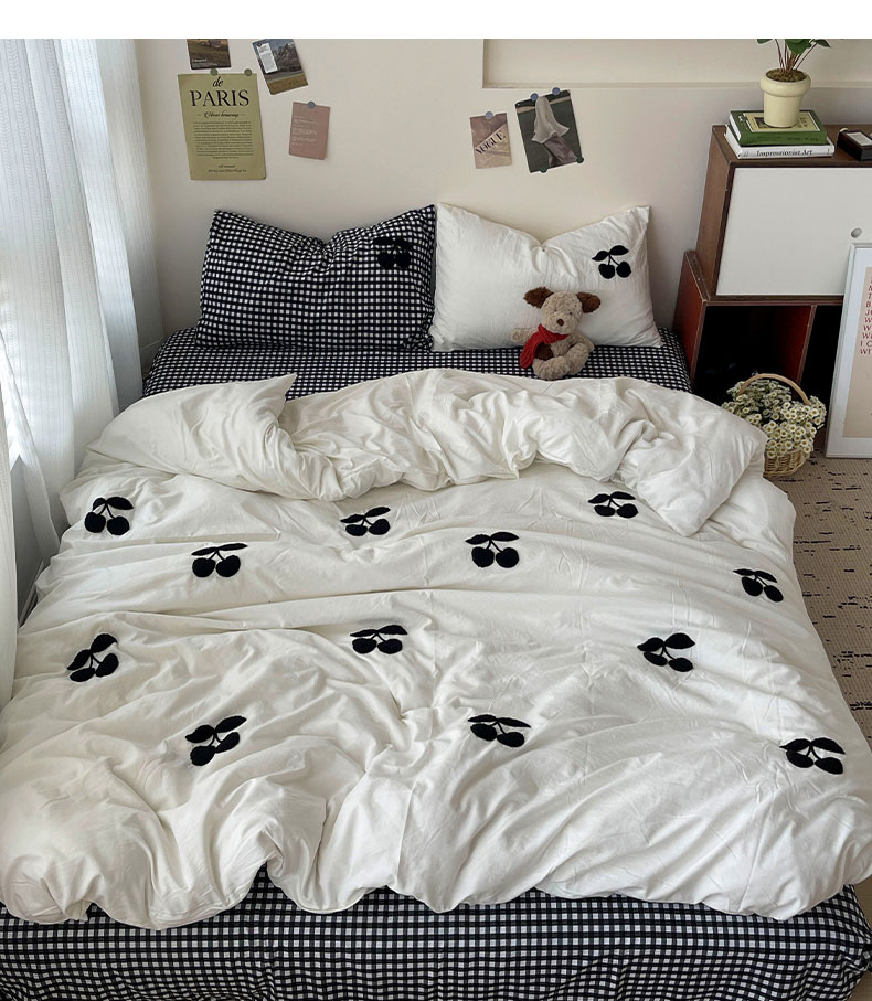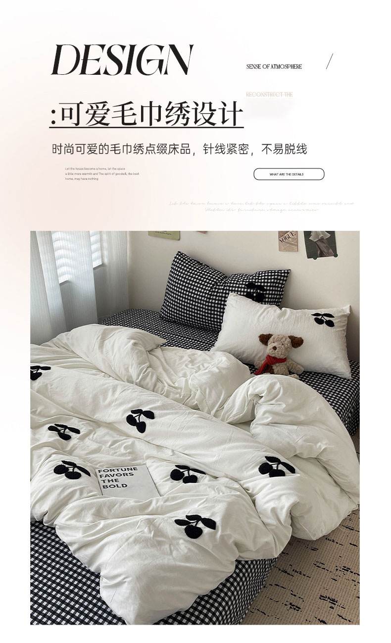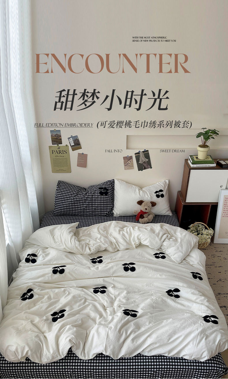 尤米 2024新款可爱樱桃系列水洗棉毛巾绣单被套 樱桃-白格