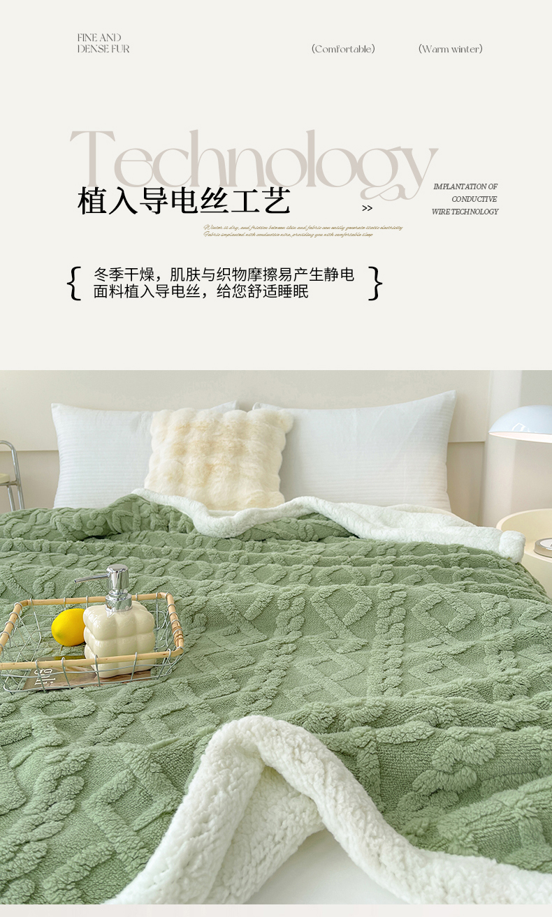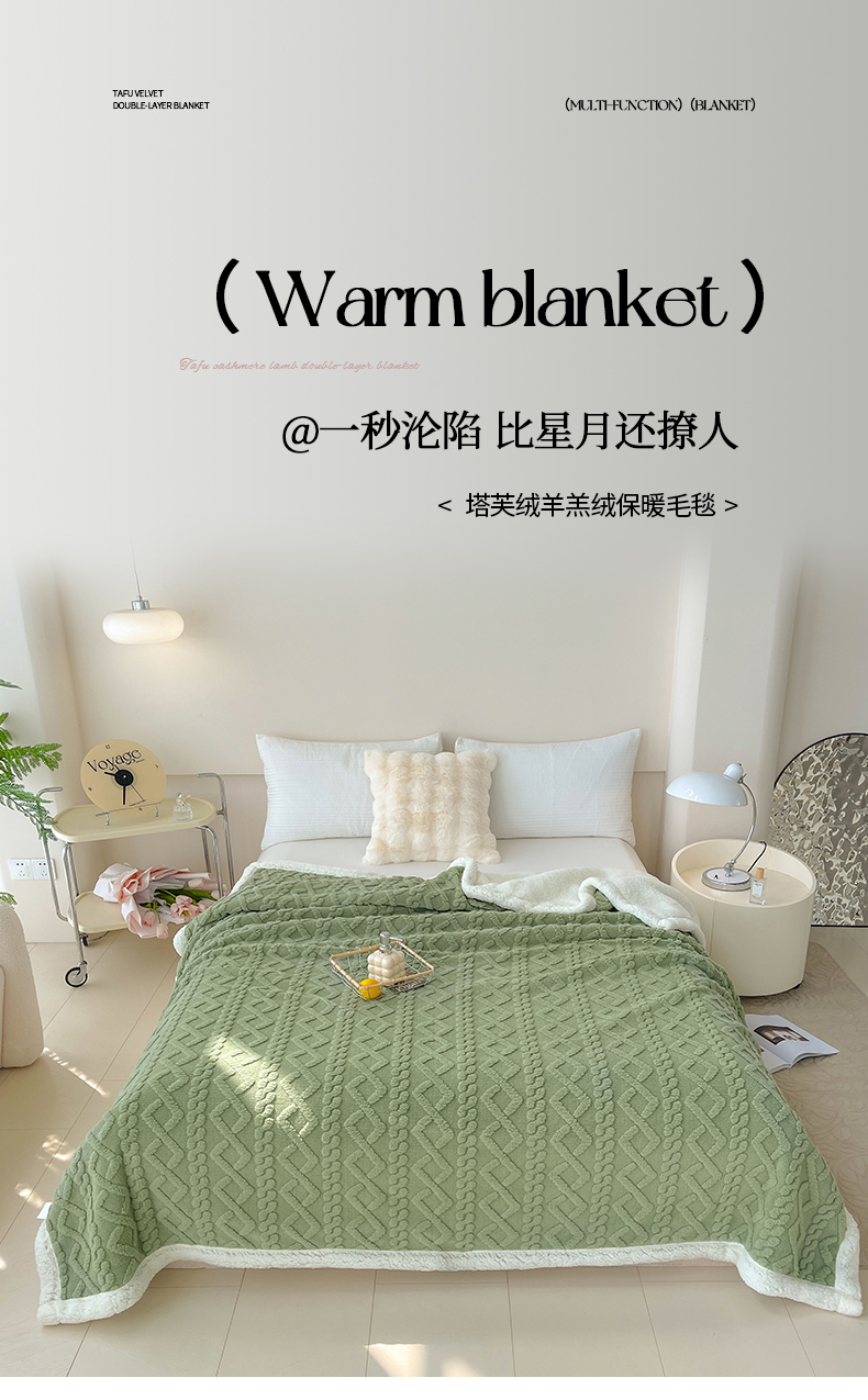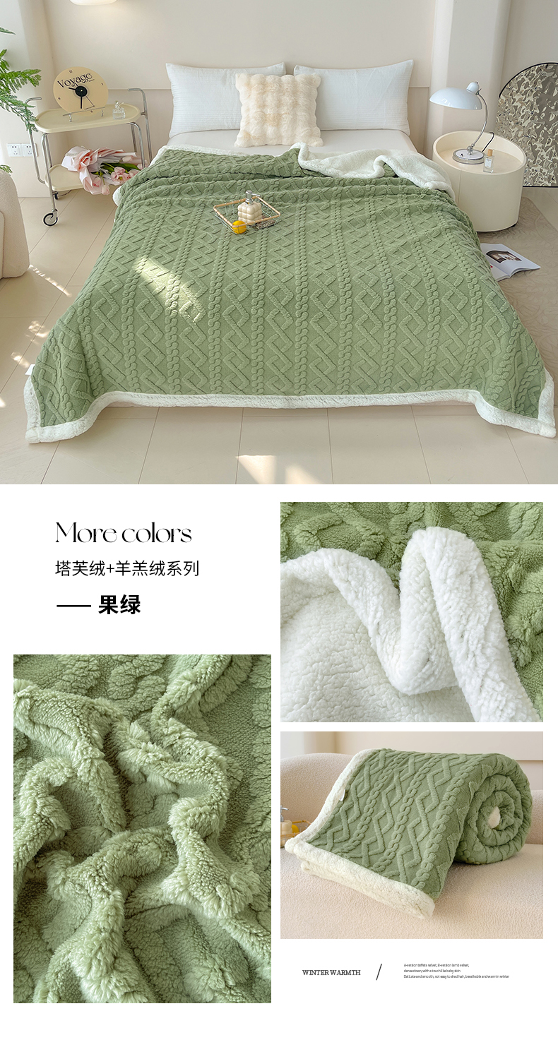 商品名称:枋梢家纺跨境电商 2024菱形格塔芙绒羊羔绒毛毯加厚保暖毛毯 果绿