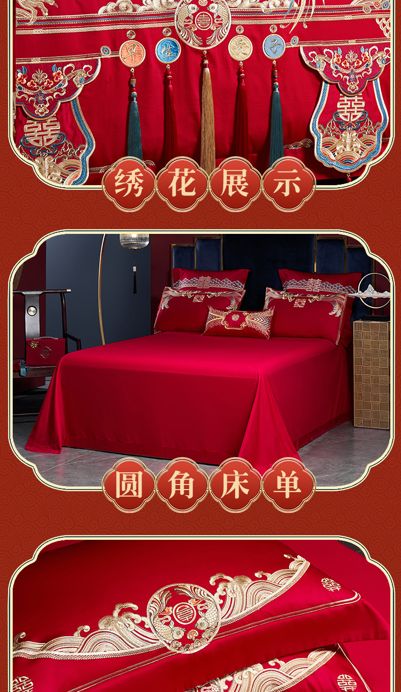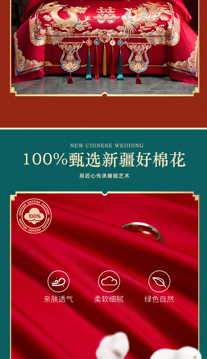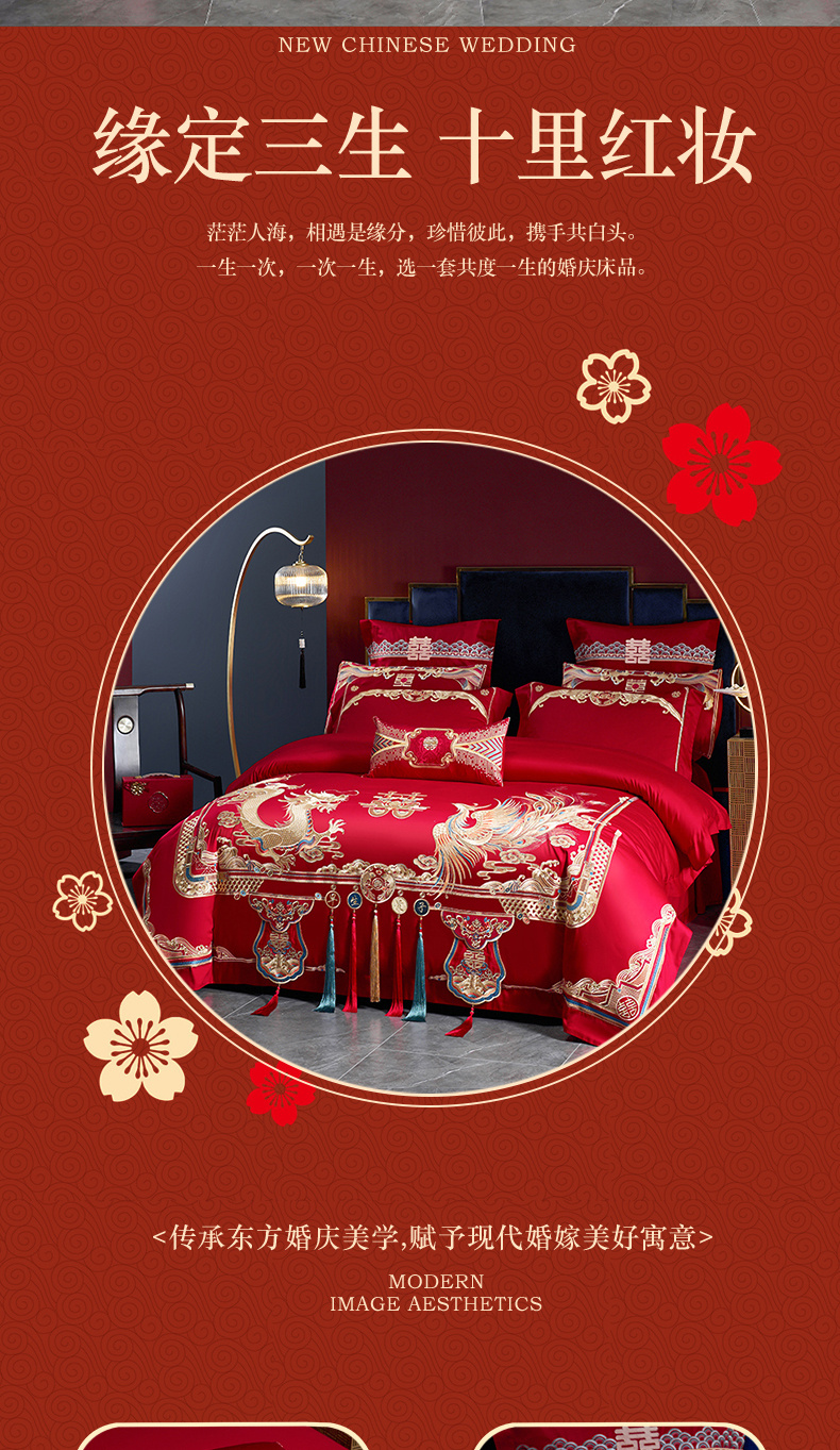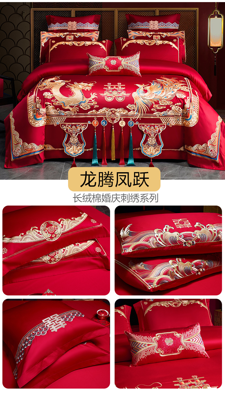 当前位置: 91家纺网 > 商品网购 > 床品套件 > 四件套 > 婚庆四件套 > 芊囍纺 2024新款纯棉长绒棉高端婚庆重工刺绣四件套多件套 龙腾凤跃