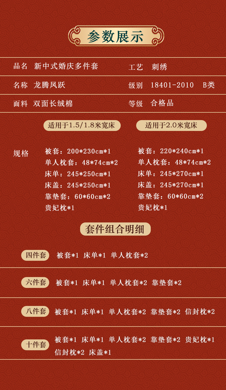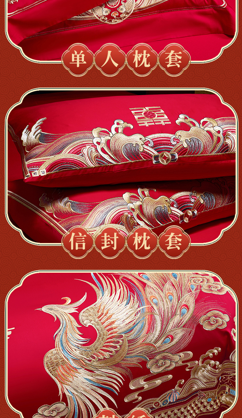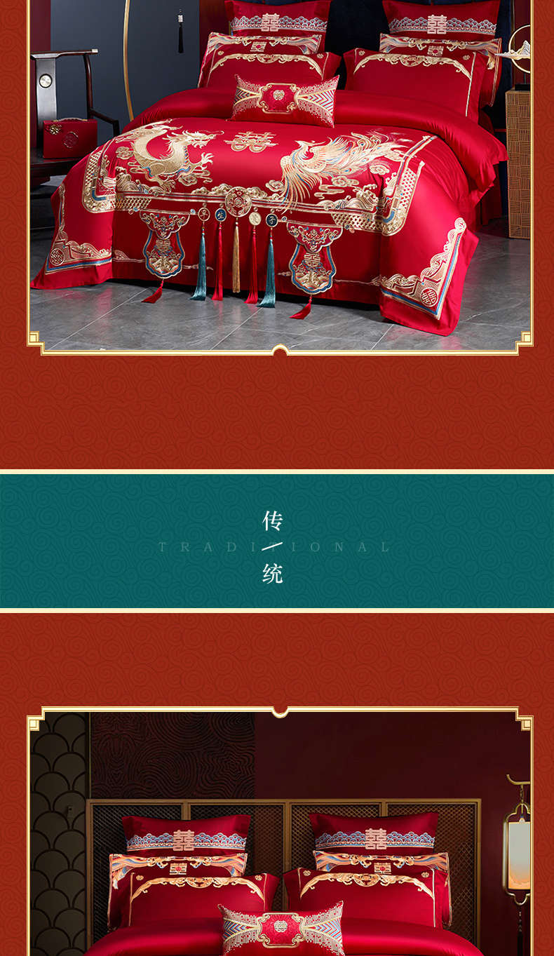当前位置: 91家纺网 > 商品网购 > 床品套件 > 四件套 > 婚庆四件套 > 芊囍纺 2024新款纯棉长绒棉高端婚庆重工刺绣四件套多件套 龙腾凤跃
