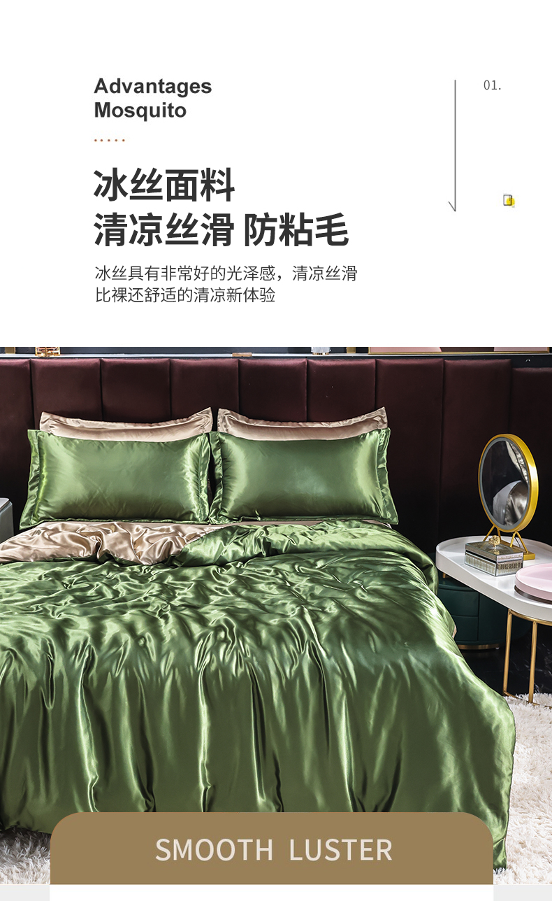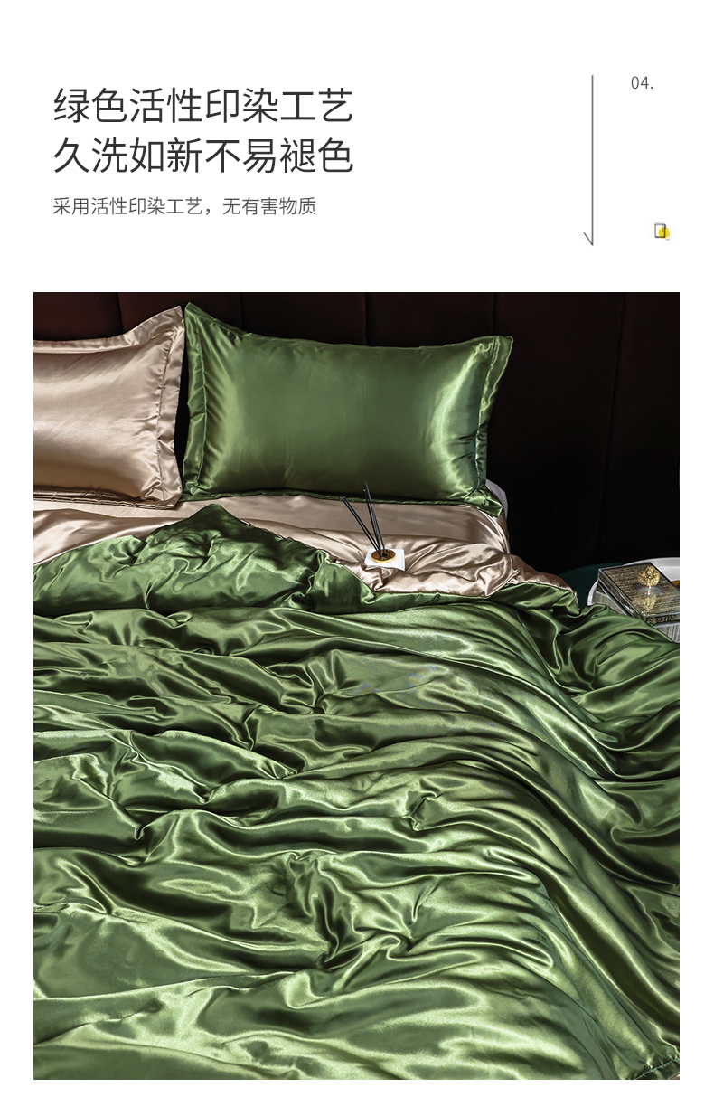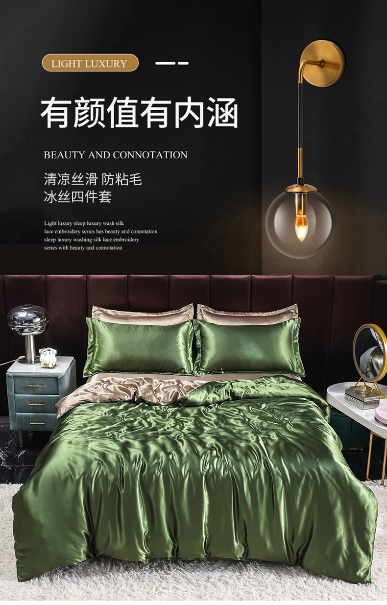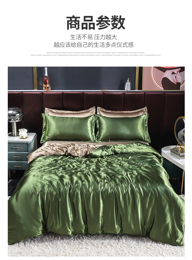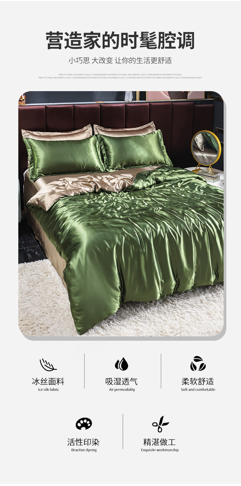 当前位置: 91家纺网 > 商品网购 > 床品套件 > 四件套 > 化纤活性四件套 > 莱越家纺 纯色网红款双面冰丝四件套夏季凉感丝真丝被套床单三件套床上用品 军绿金