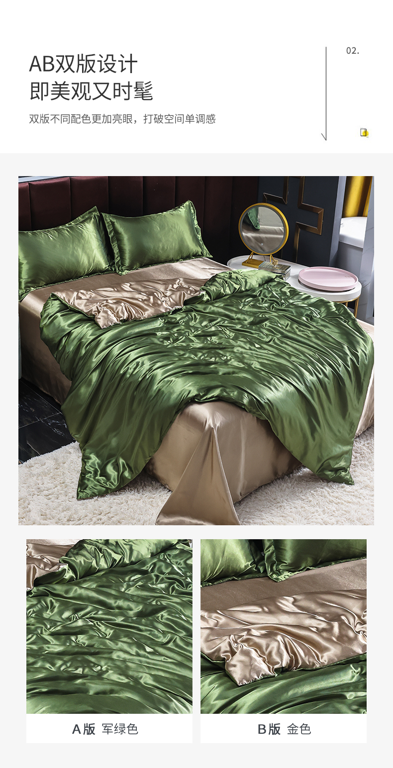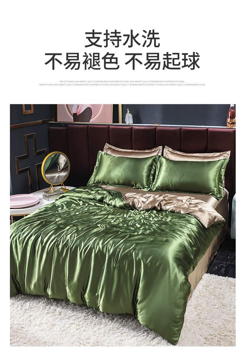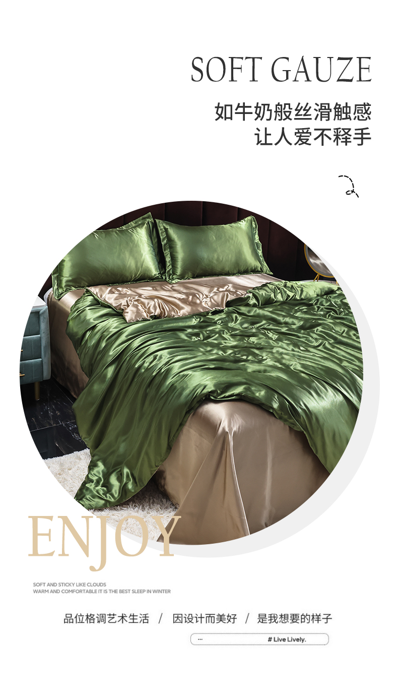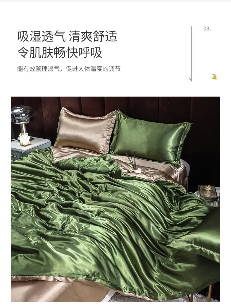 当前位置: 91家纺网 > 商品网购 > 床品套件 > 四件套 > 化纤活性四件套 > 莱越家纺 纯色网红款双面冰丝四件套夏季凉感丝真丝被套床单三件套床上用品 军绿金