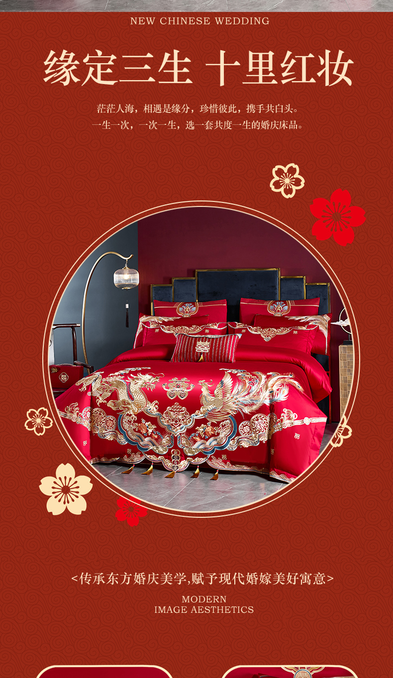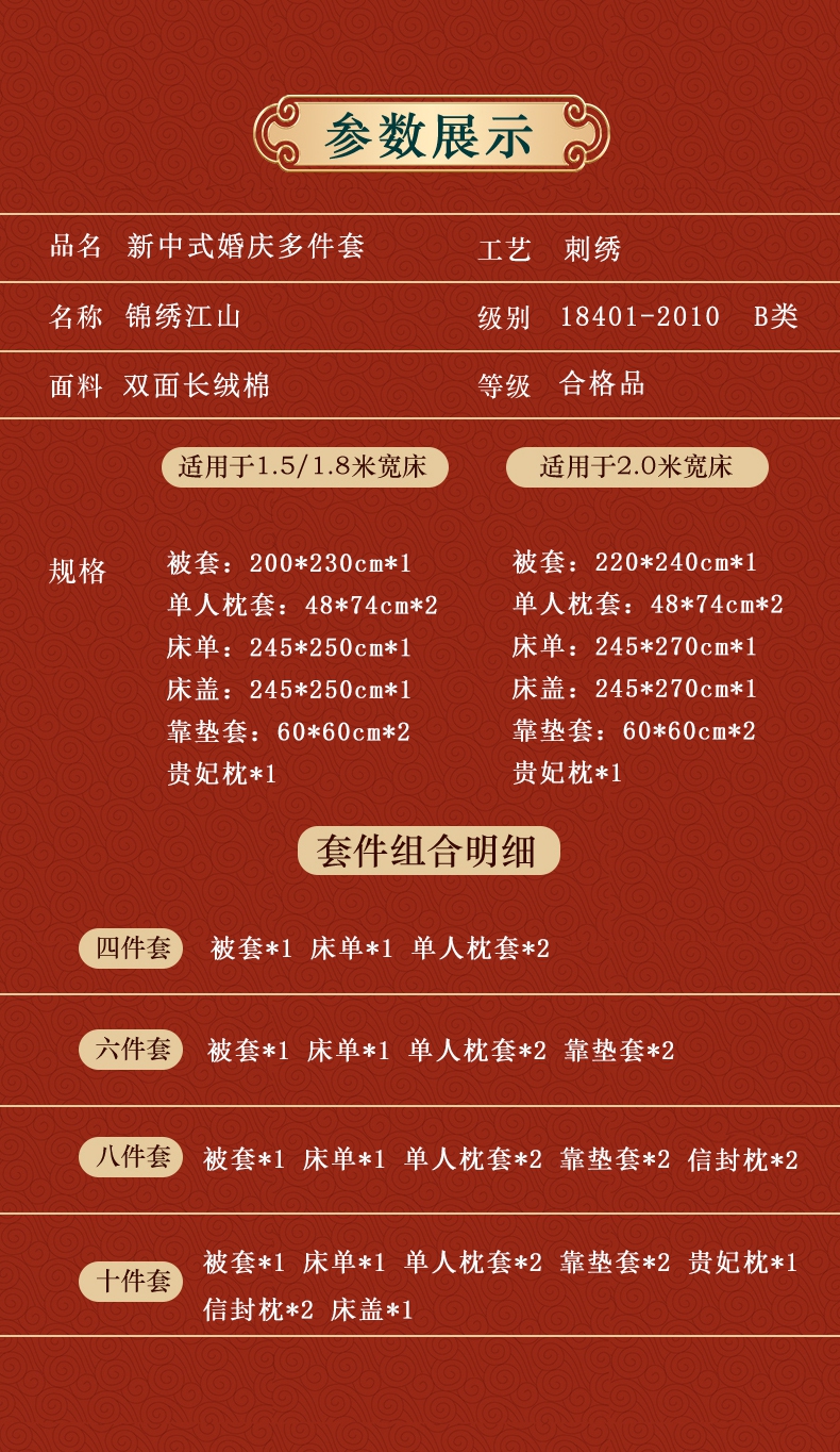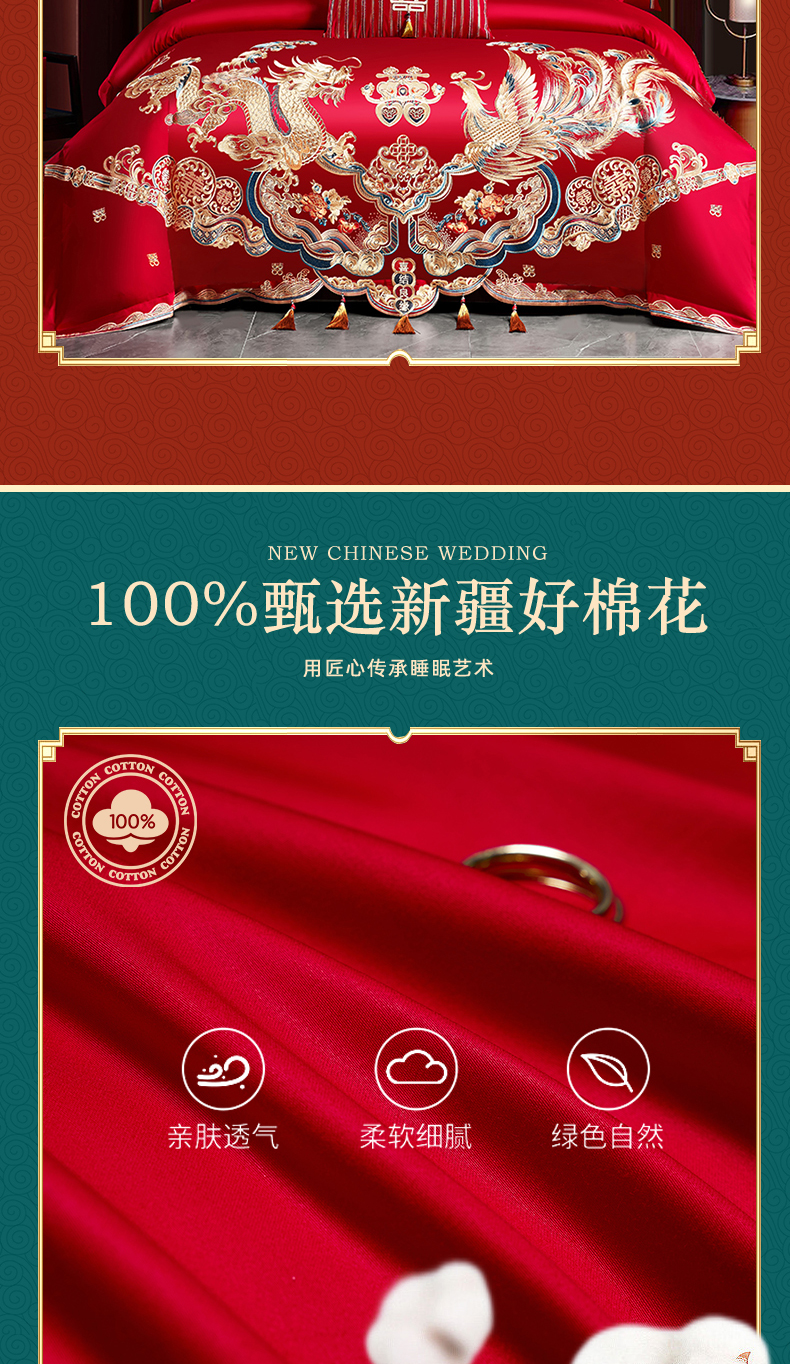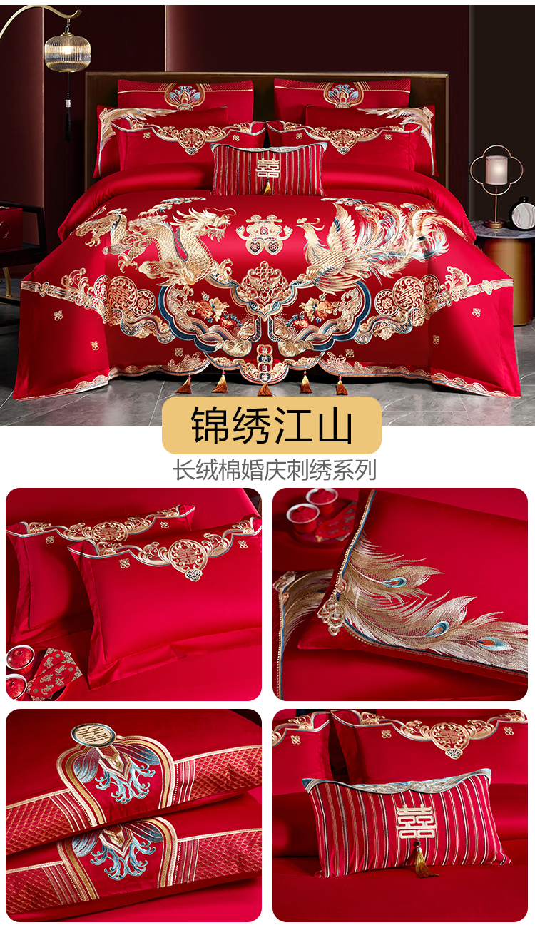 当前位置: 91家纺网 > 商品网购 > 床品套件 > 四件套 > 婚庆四件套 > 芊囍纺 2024新款高端双面长绒棉婚庆套件四件套多件套 锦绣江山