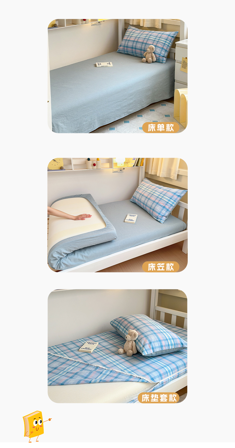 商品名称:(总)2024新款纯棉全棉A类色织水洗棉学生宿舍三件套四件套上下铺学生床套床垫套保护套