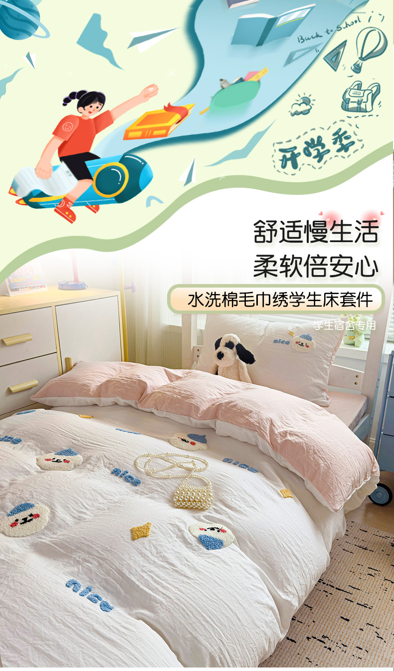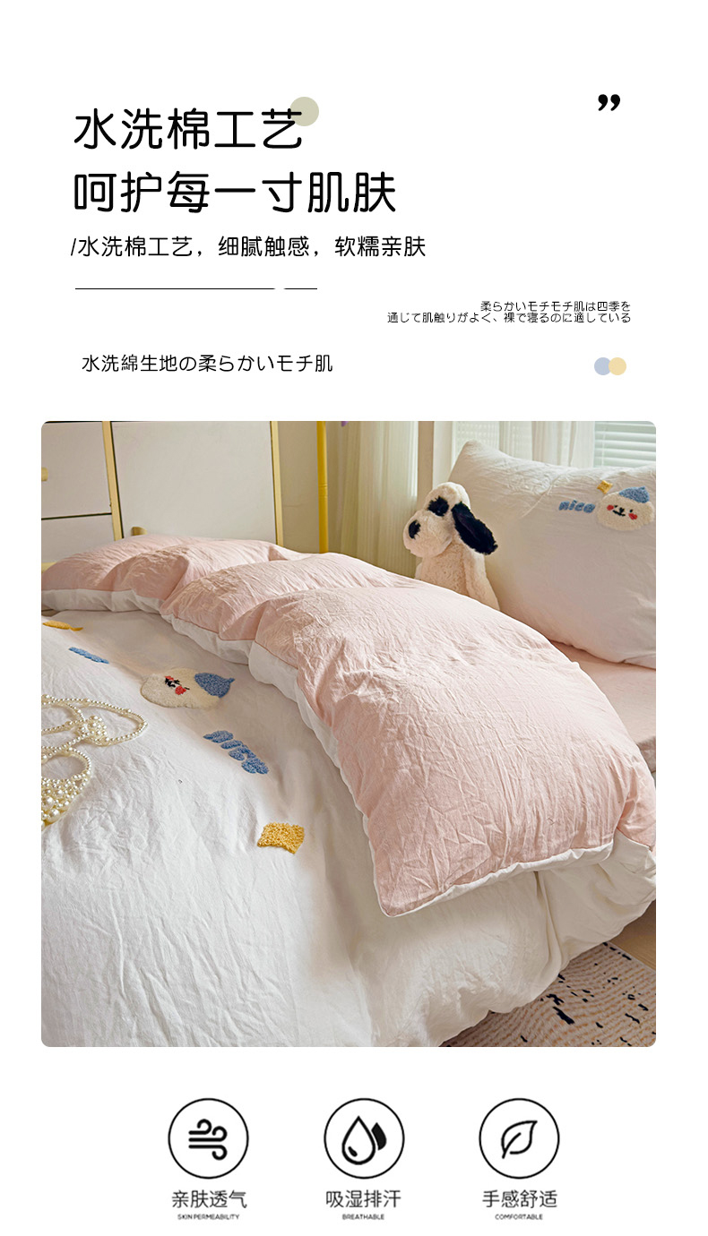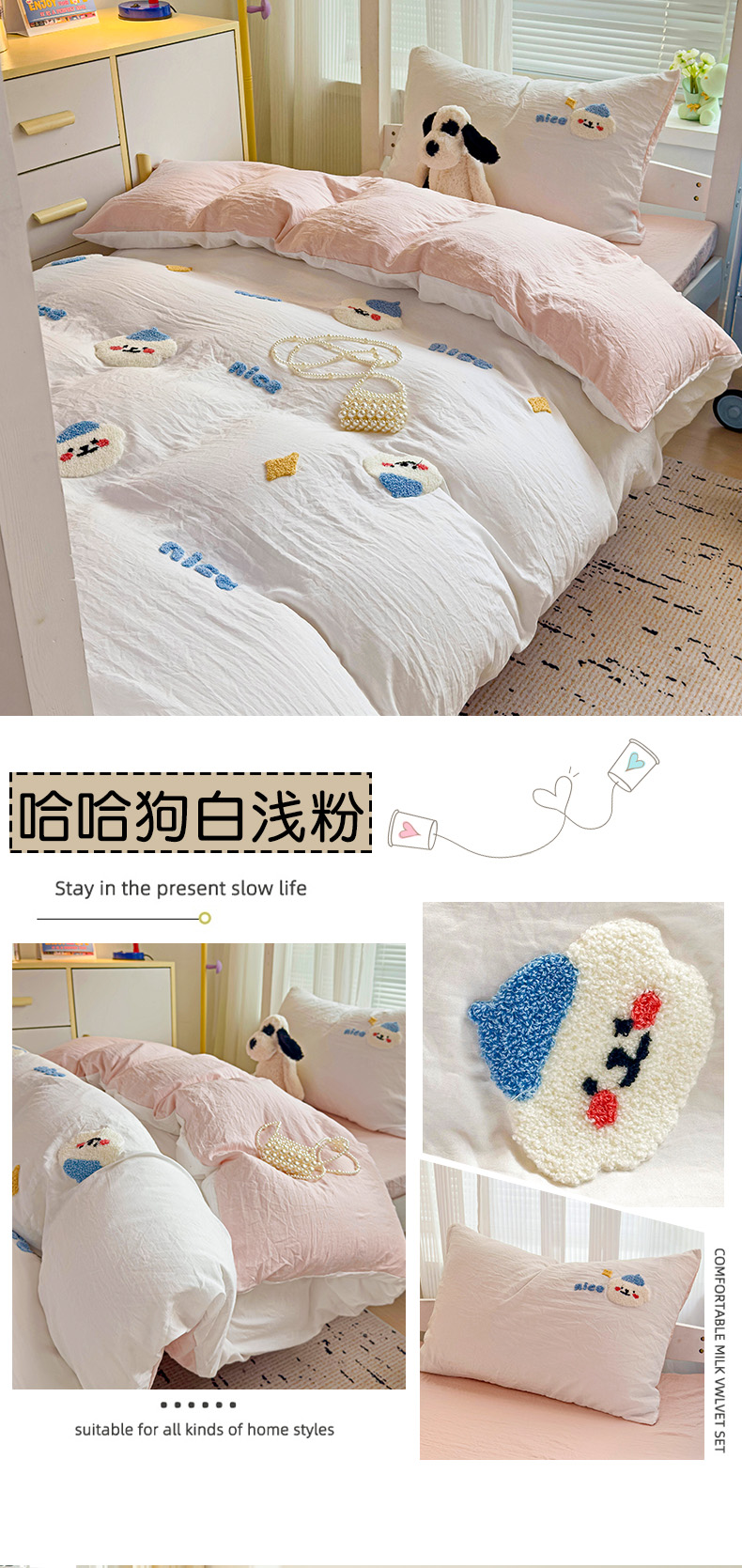 当前位置: 91家纺网 > 商品网购 > 床品套件 > 三件套 > 韩巢家纺 2024新款学生宿舍寝室上下铺超柔水洗棉床单被套三件套-哈哈狗(提供卖家秀) 哈哈狗白浅粉