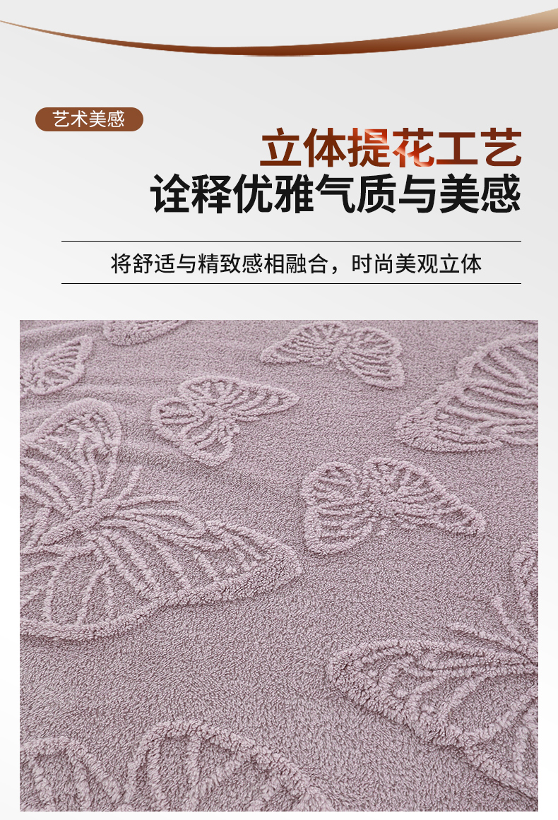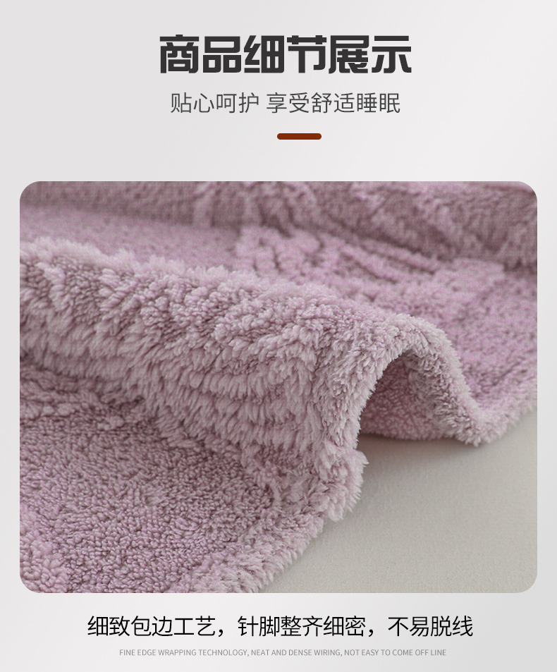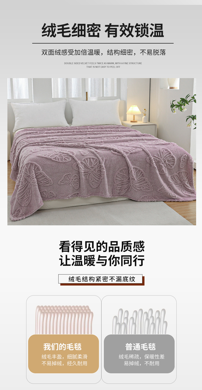 商品名称:枋梢家纺 2024新款跨境电商塔芙绒纯色蝴蝶花提花多功能盖毯午睡毯子办公毛毯 紫色