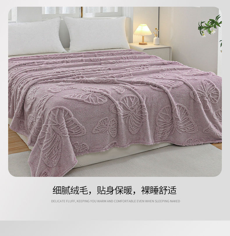 枋梢家纺 2024新款跨境电商塔芙绒纯色蝴蝶花提花多功能盖毯午睡毯子办公毛毯 紫色