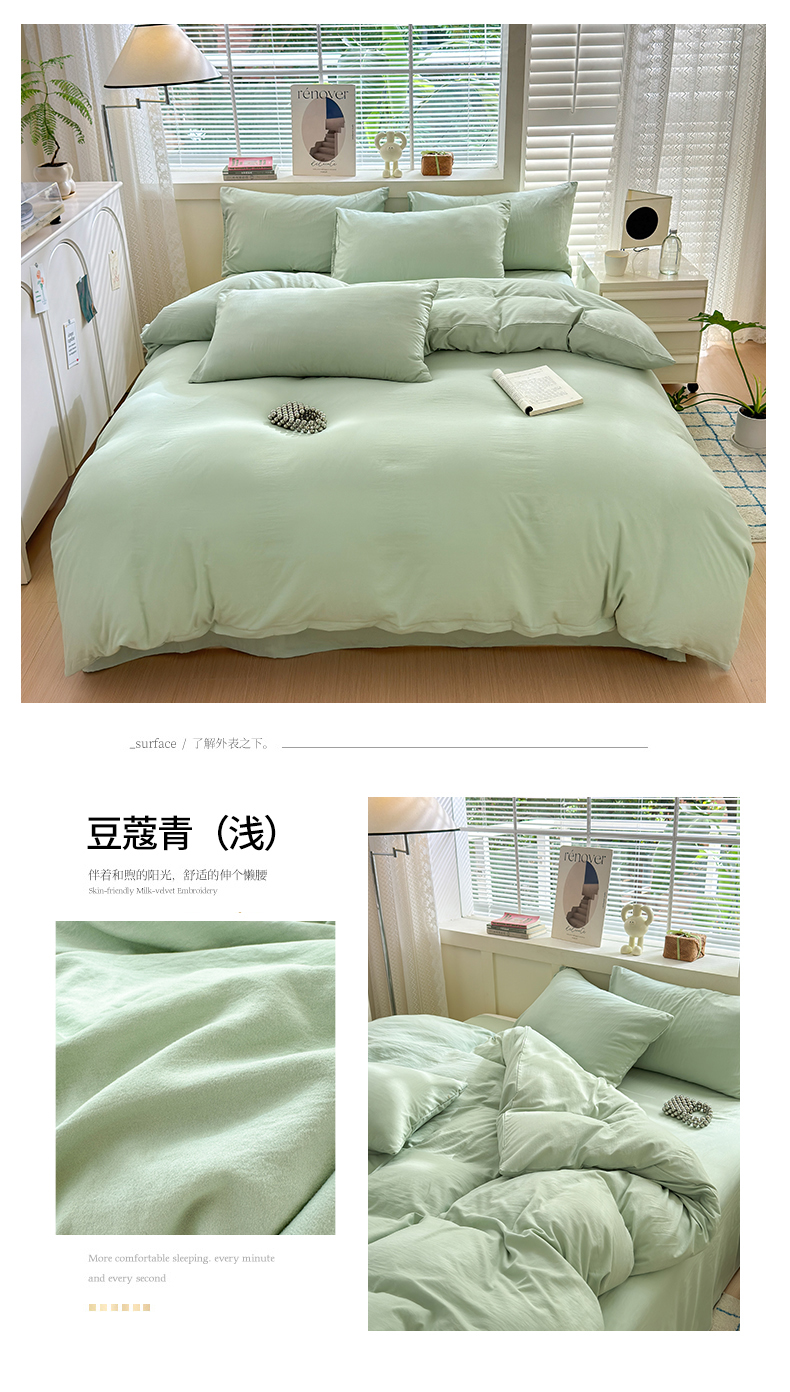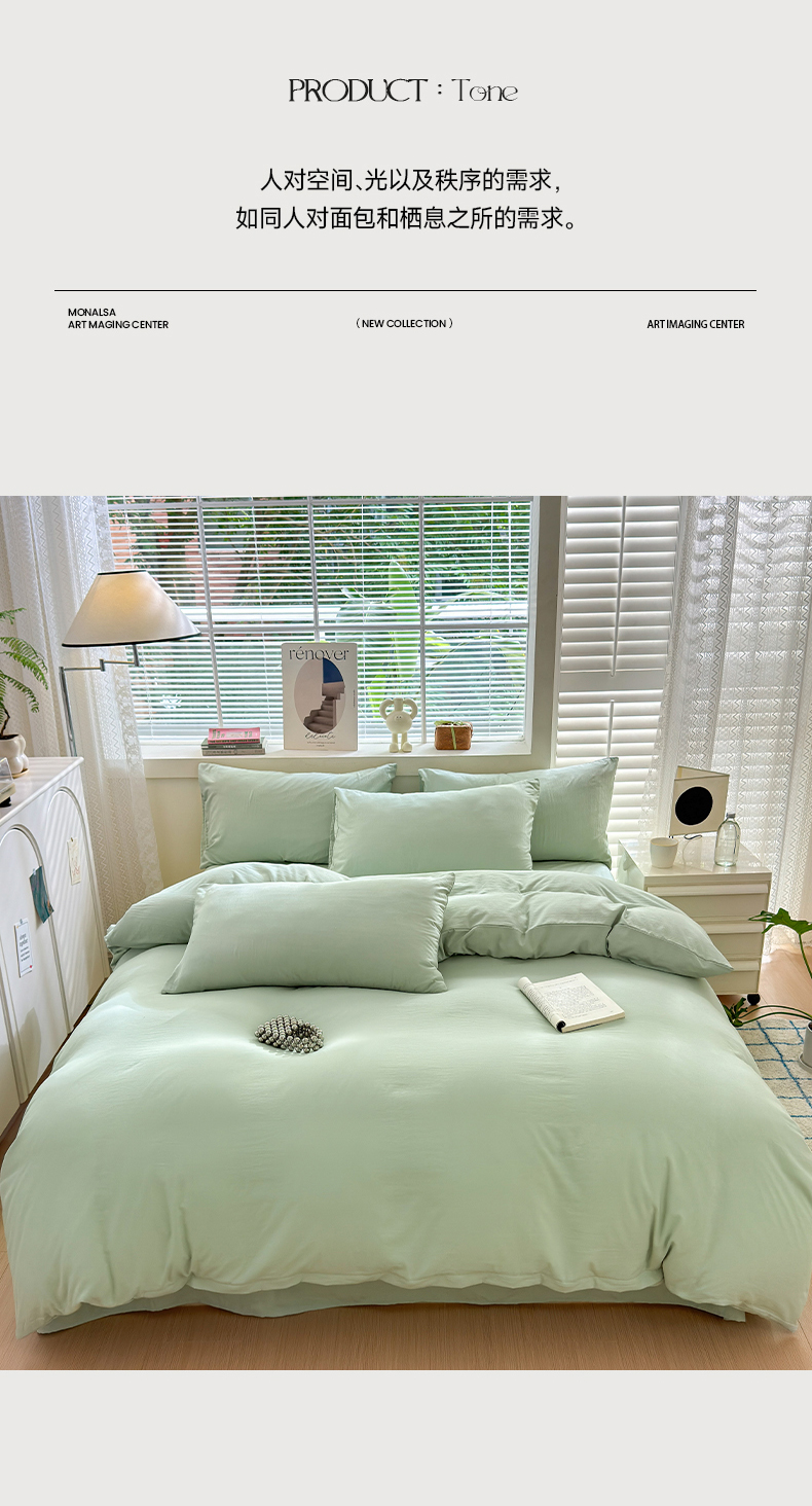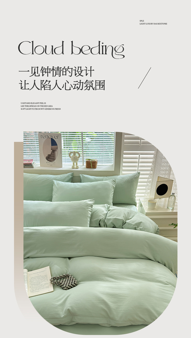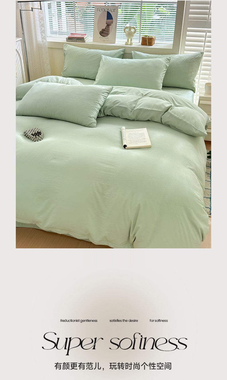 当前位置: 91家纺网 > 商品网购 > 床品套件 > 四件套 > 水洗棉四件套 > 沃朴家居 2024新款纯色水洗棉四件套学生三件套 豆蔻青(浅)