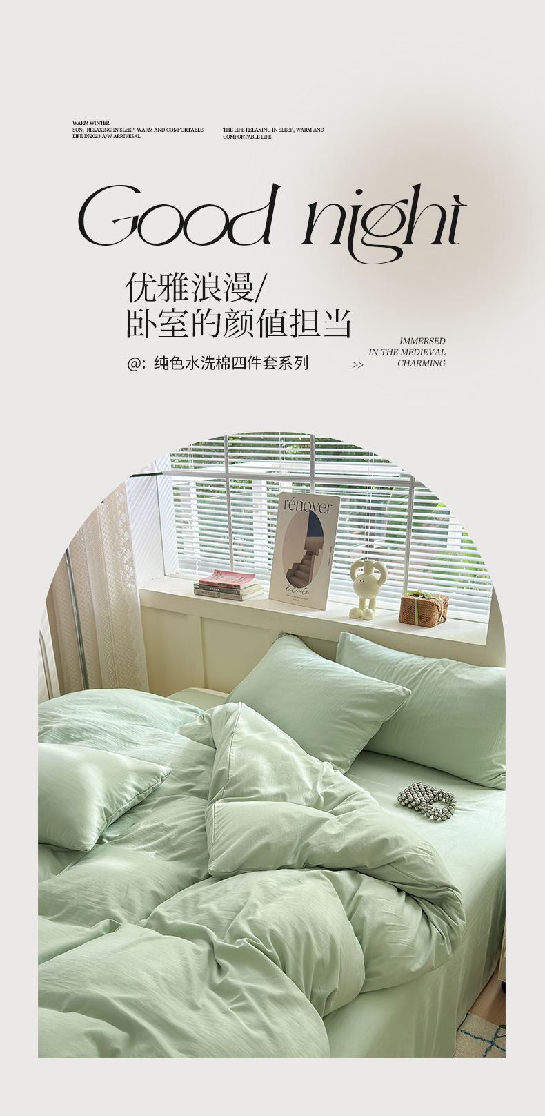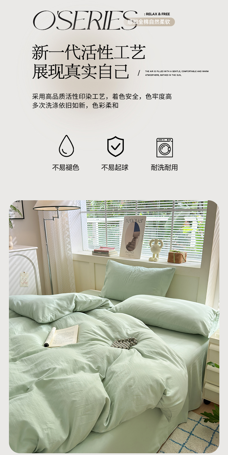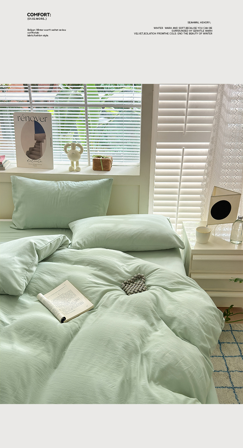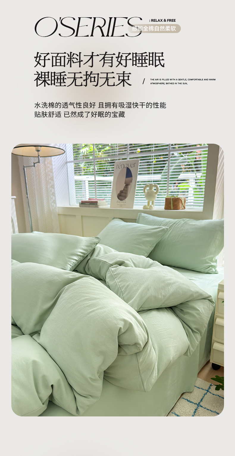 当前位置: 91家纺网 > 商品网购 > 床品套件 > 四件套 > 水洗棉四件套 > 沃朴家居 2024新款纯色水洗棉四件套学生三件套 豆蔻青(浅)