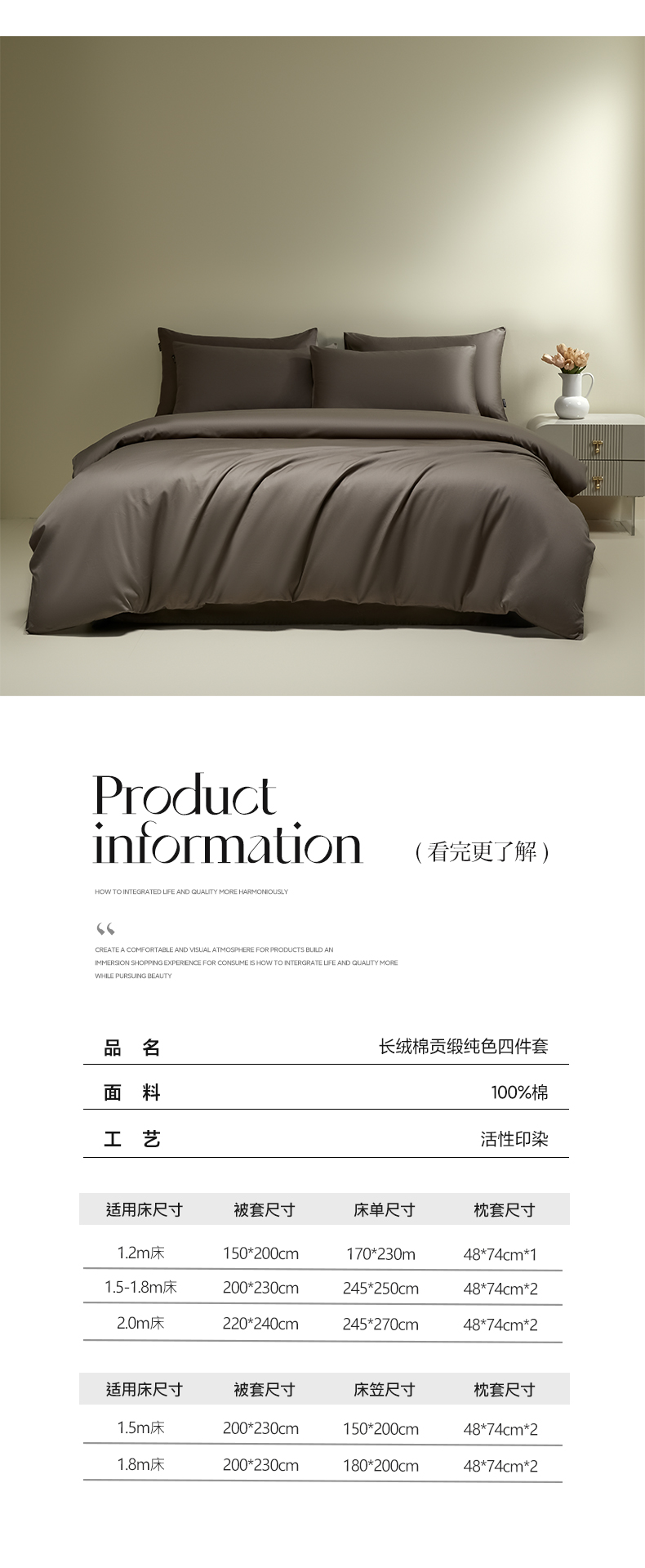 商品名称:安莱生活 2024新款100s全棉贡缎四件套 咖啡