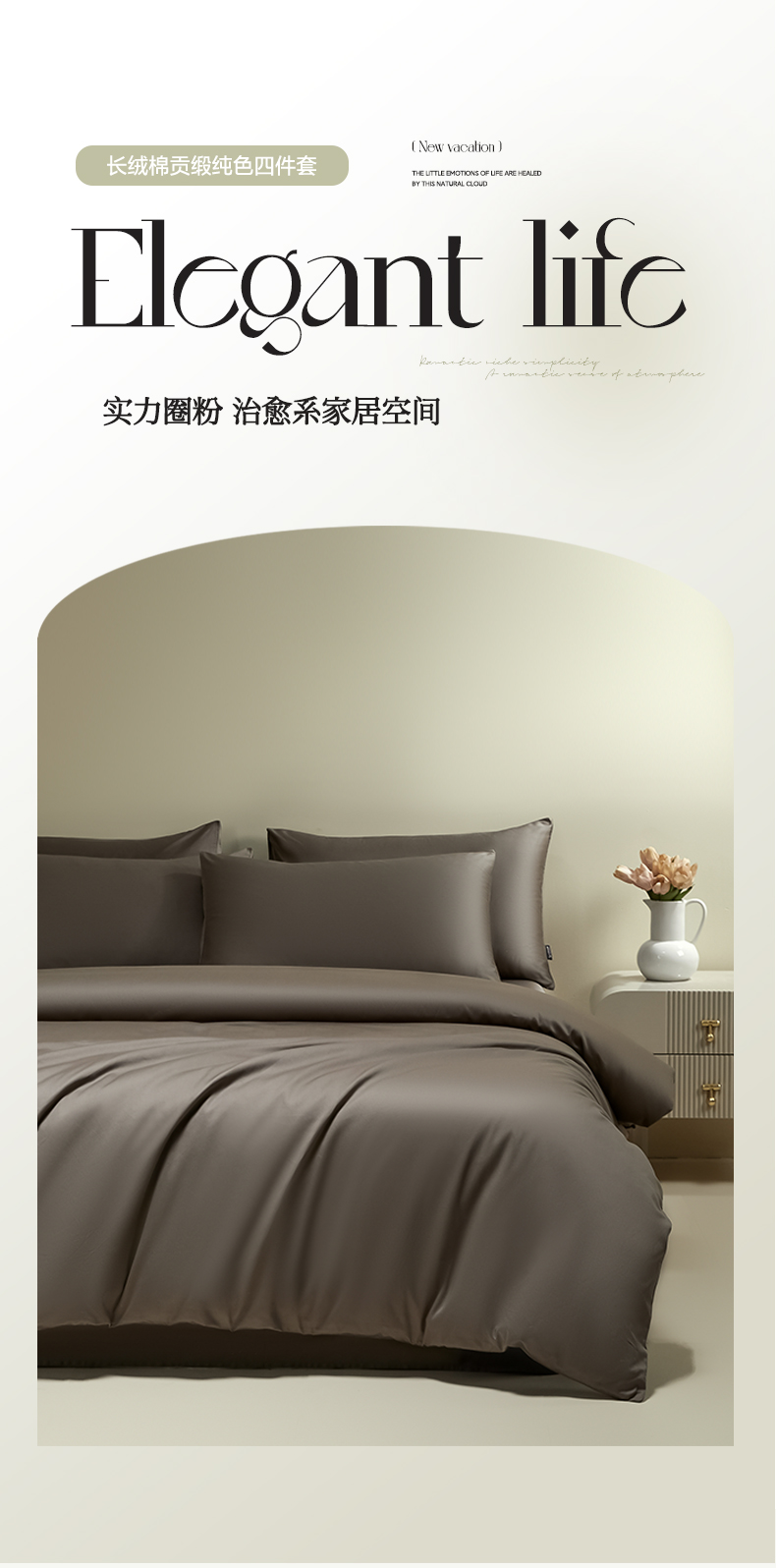 安莱生活 2024新款100s全棉贡缎四件套 咖啡