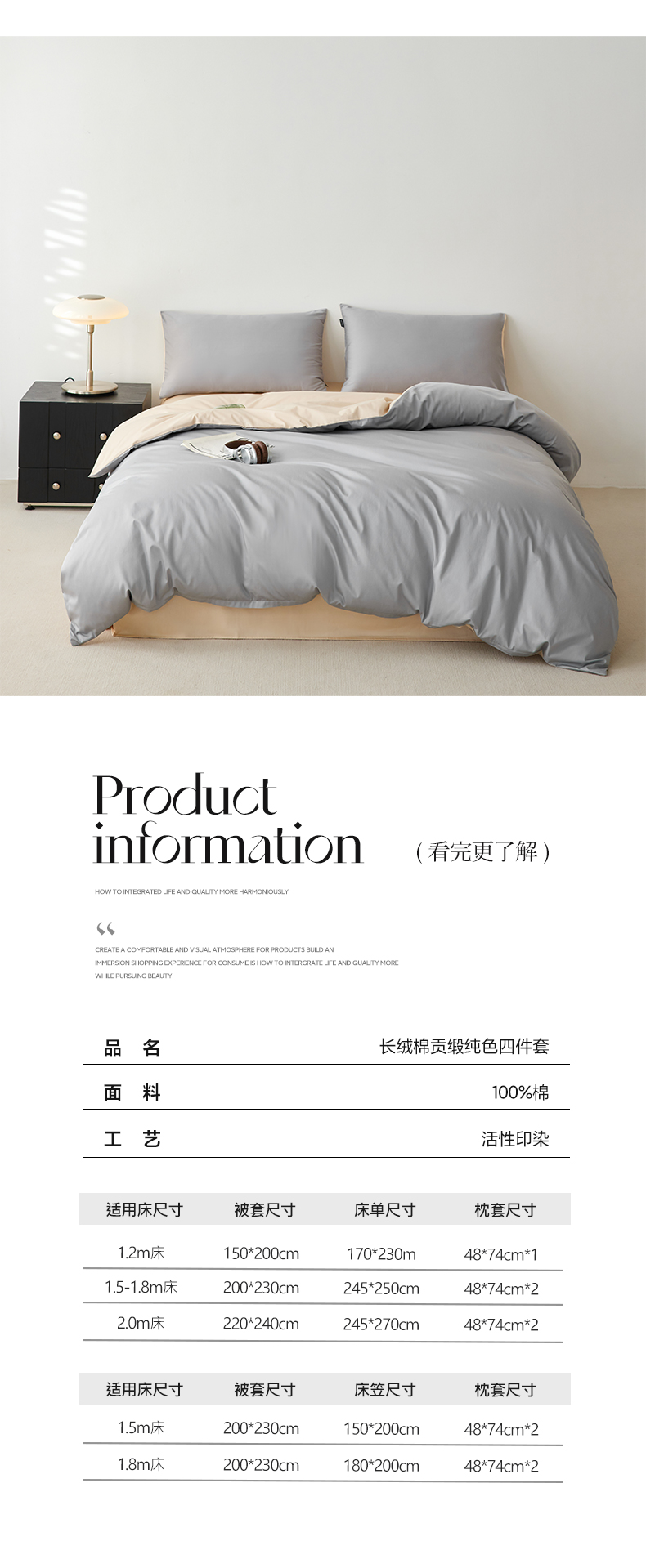 商品名称:安莱生活 2024新款100s全棉贡缎四件套 红灰-棕灰