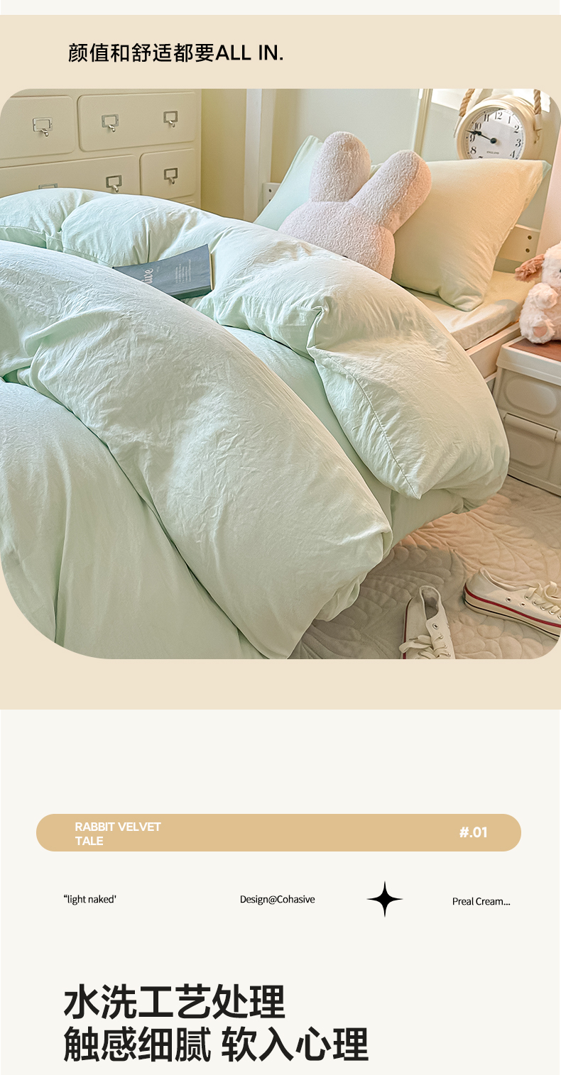 当前位置: 91家纺网 > 商品网购 > 床品套件 > 三件套 > 韩巢家纺 2024新款学生宿舍员工寝室上下铺超柔水洗棉床单被套三件套-纯色系列拼(提供卖家秀) 水洗棉浅绿