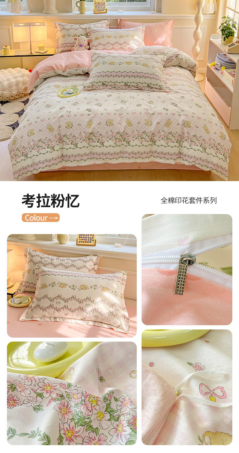 绵庭家纺 2024新款全棉印花套件系列四件套 考拉粉忆