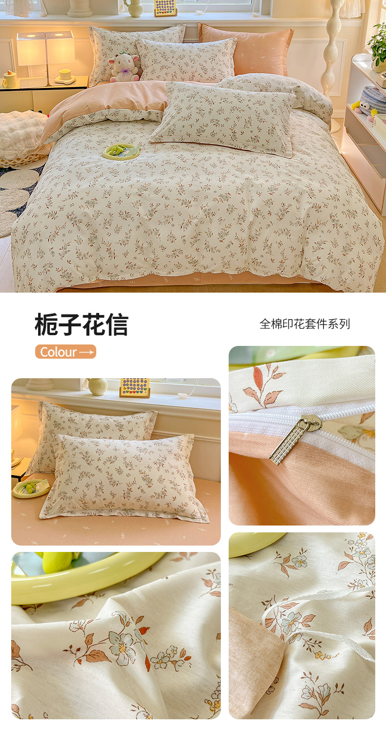 商品名称:绵庭家纺 2024新款全棉印花套件系列四件套 栀子花信