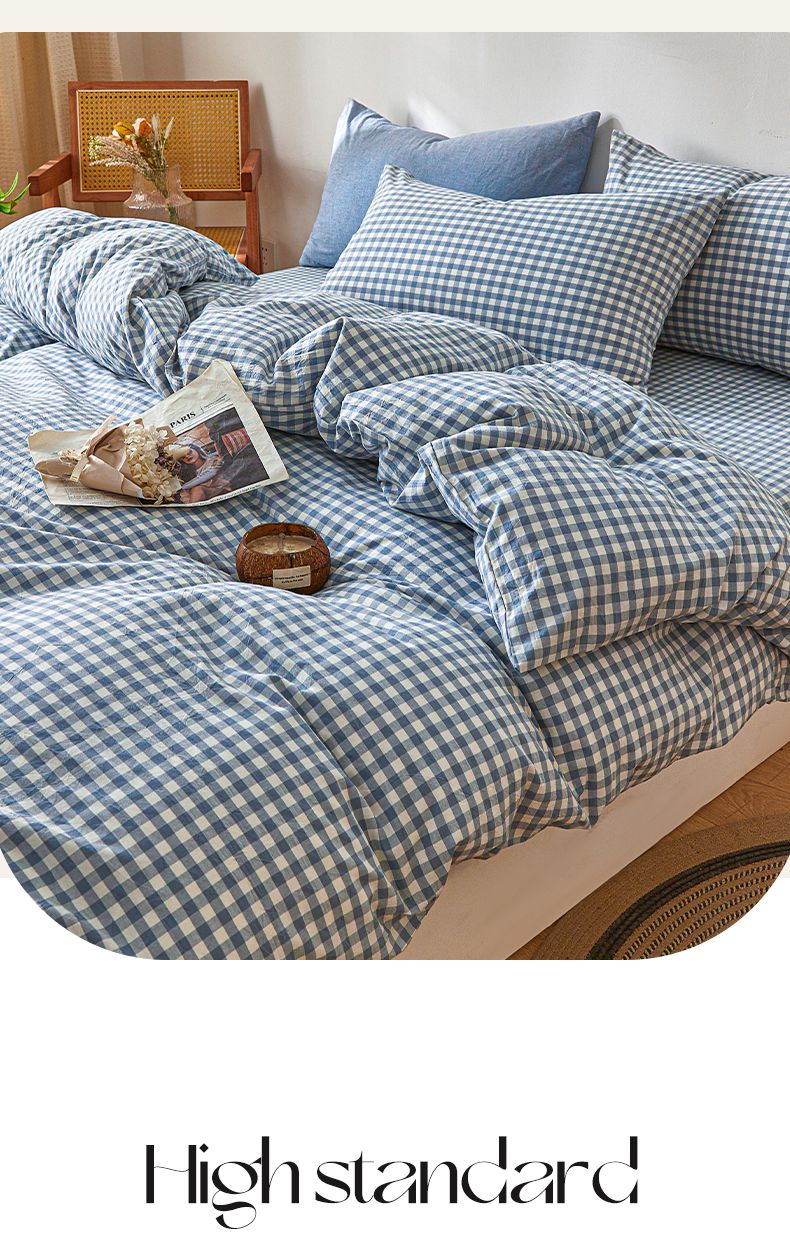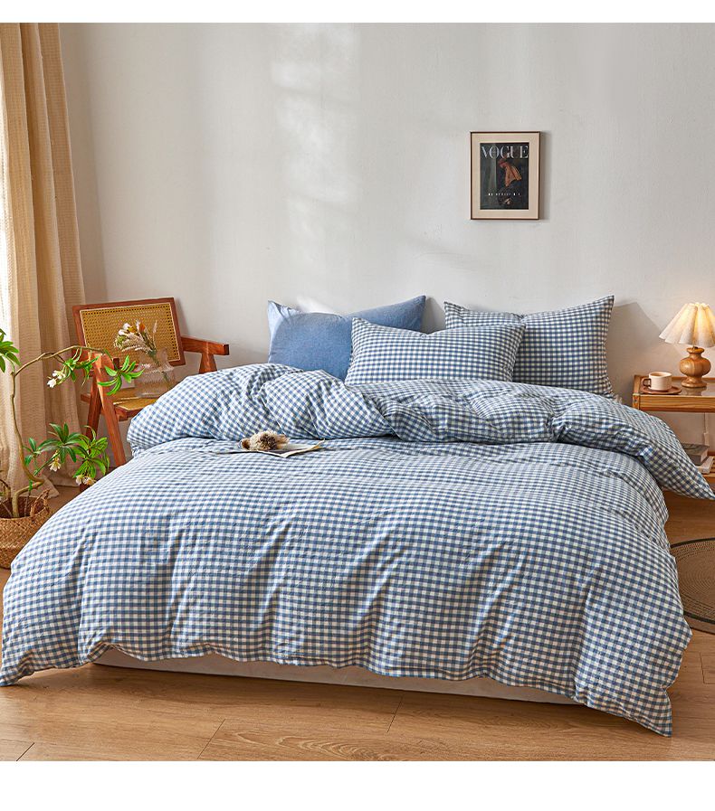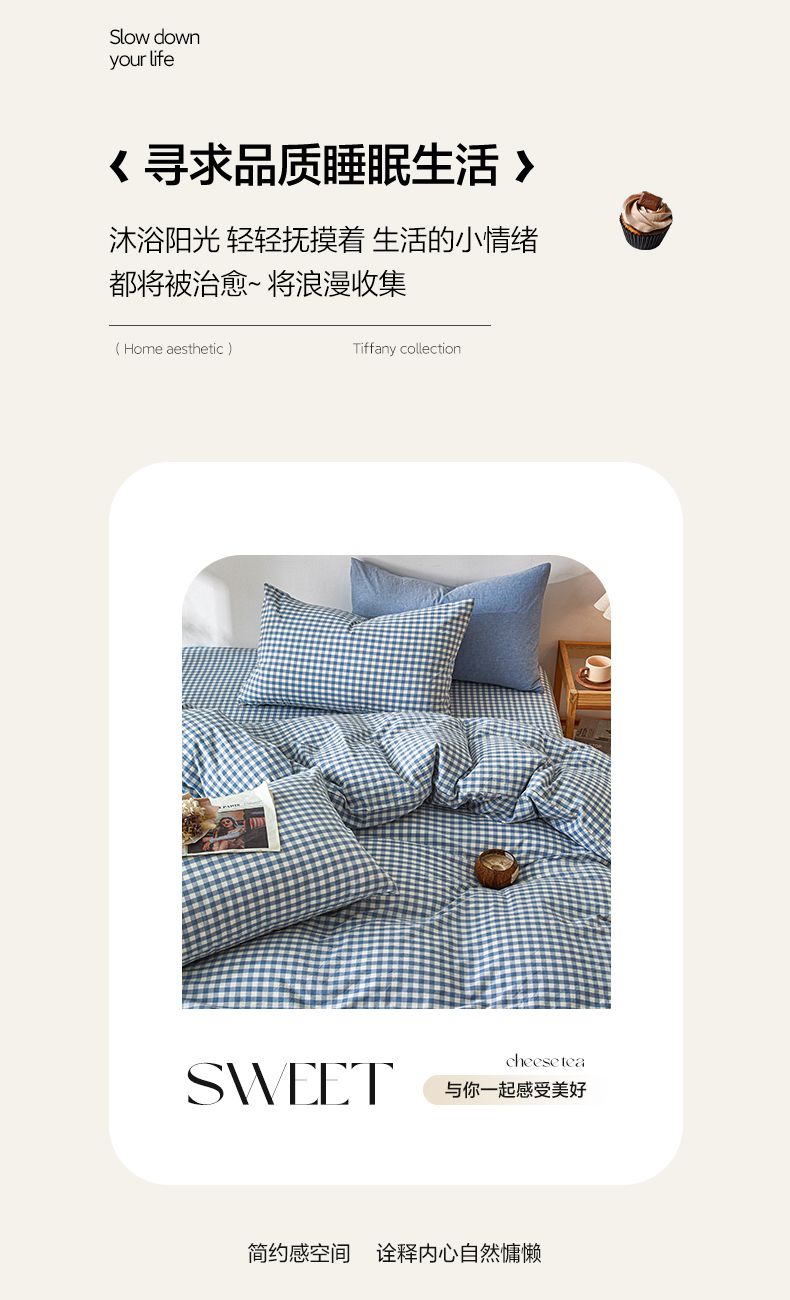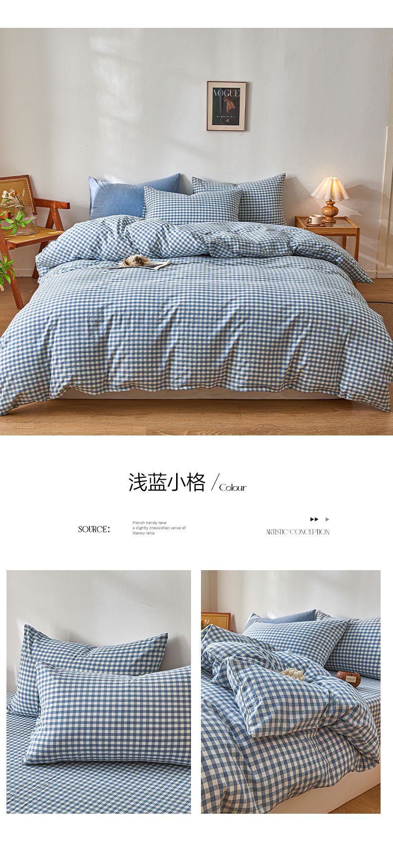 当前位置: 91家纺网 > 商品网购 > 床品套件 > 四件套 > 全棉普通四件套 > 2025新款全棉色织水洗棉四件套被套三件套系列 浅蓝小格