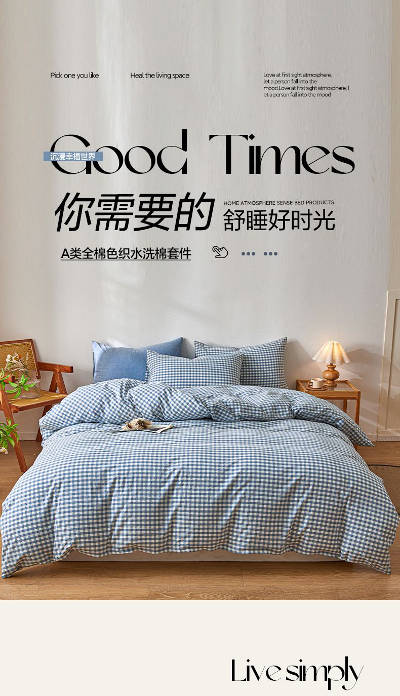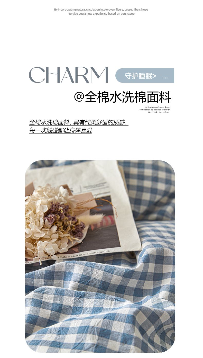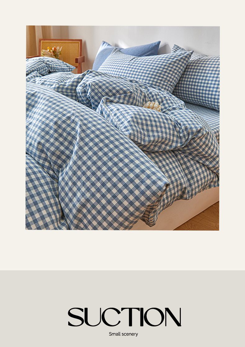当前位置: 91家纺网 > 商品网购 > 床品套件 > 四件套 > 全棉普通四件套 > 2025新款全棉色织水洗棉四件套被套三件套系列 浅蓝小格