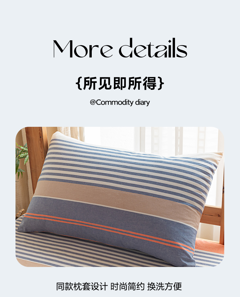 2025新款全棉水洗棉被套纯棉单双人宿舍学生-可配3件套 橘兰咖条