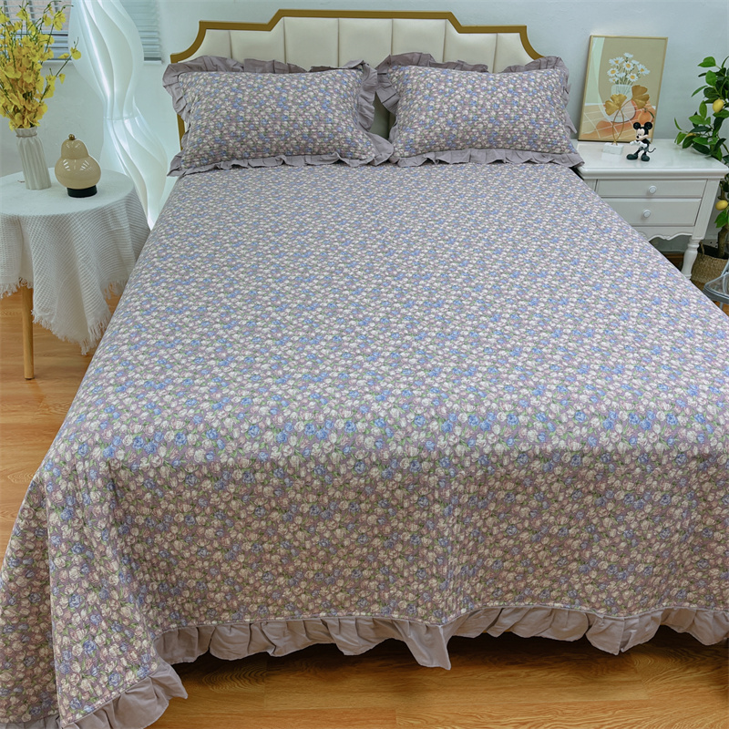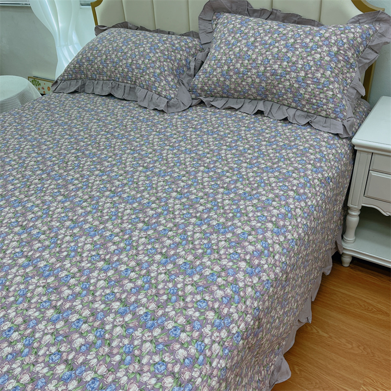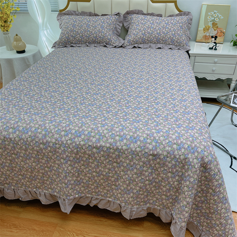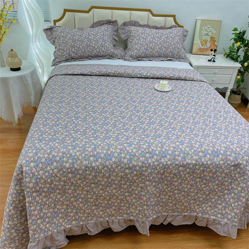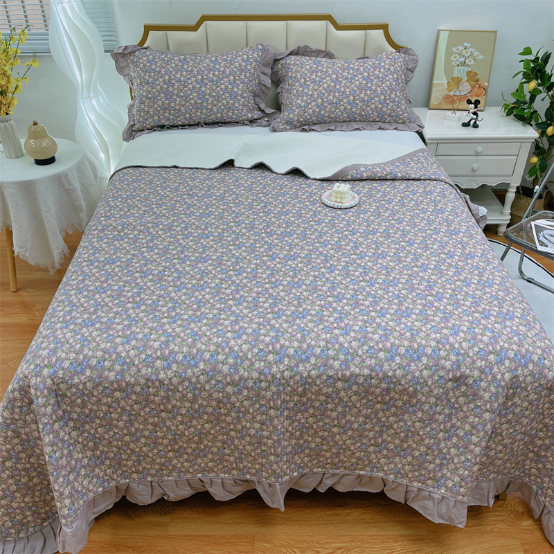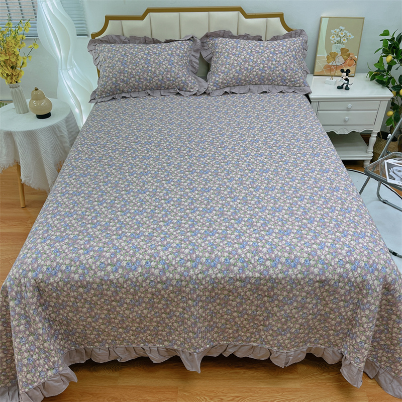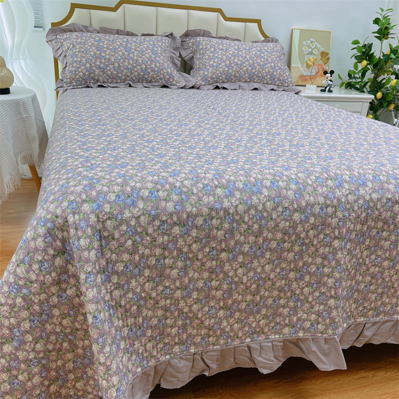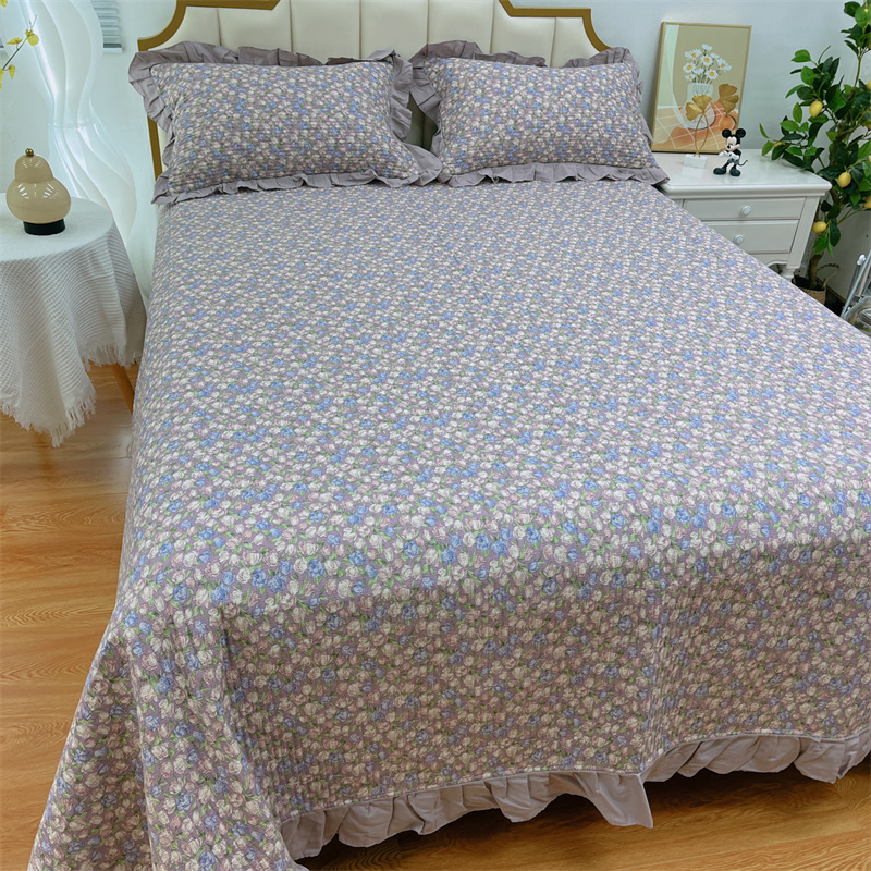 暖居 2024新款A类双层纱全棉床盖三件套防滑不跑床绗缝加厚纯棉床单 紫霞