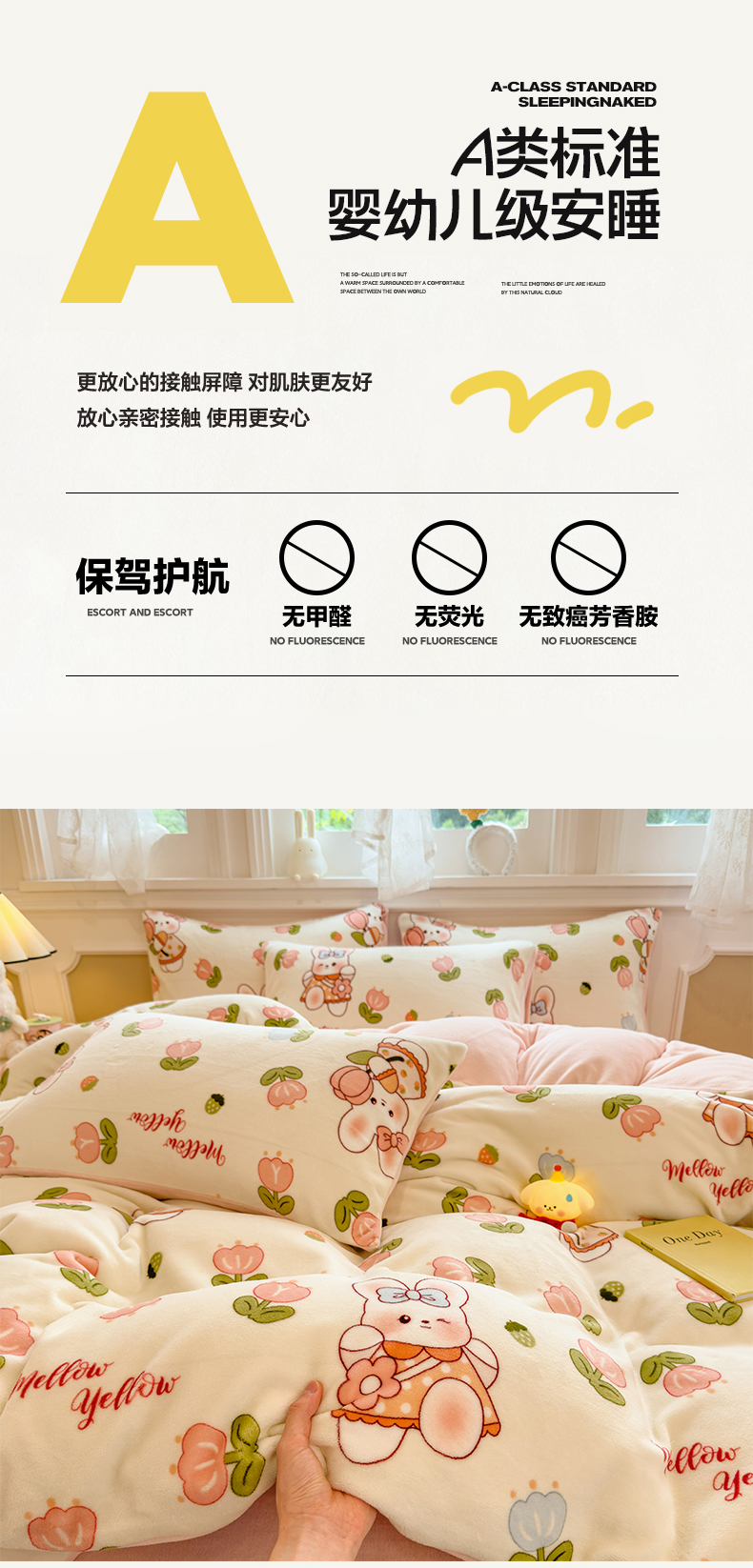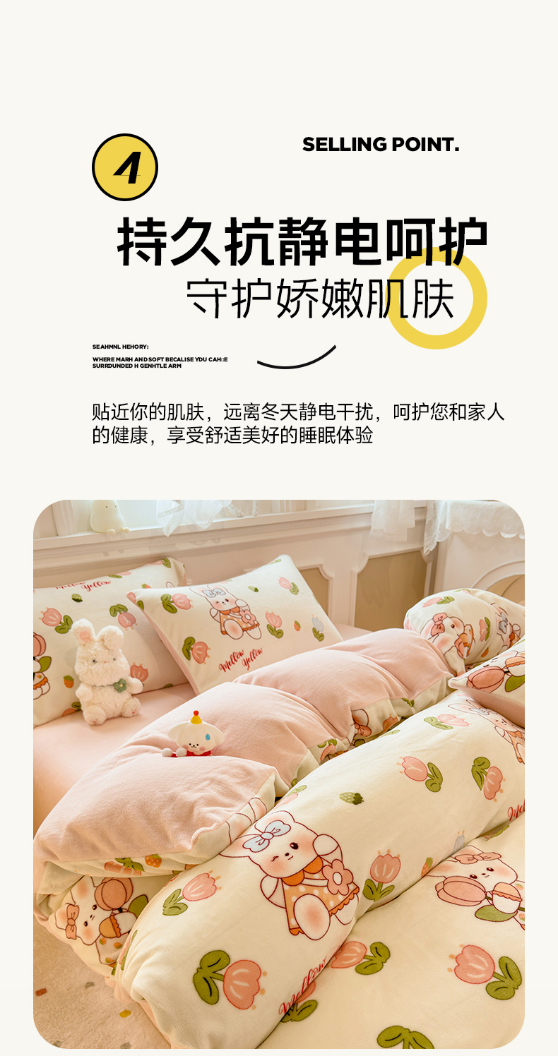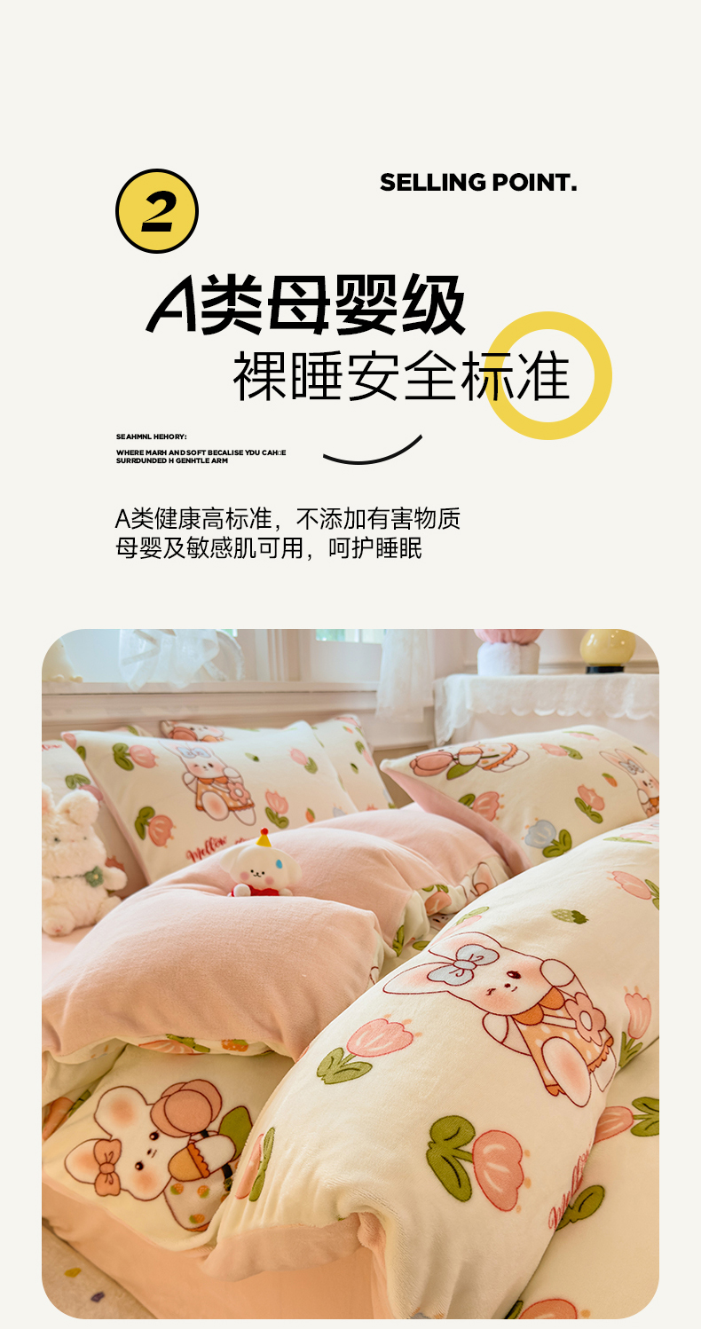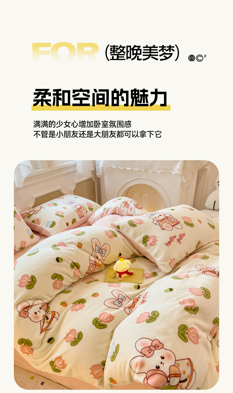 当前位置: 91家纺网 > 商品网购 > 床品套件 > 四件套 > 牛奶绒四件套 > 摩妮卡 2025新款小清新牛奶绒印花四件套床单款床笠单被套-场景1 早安兔