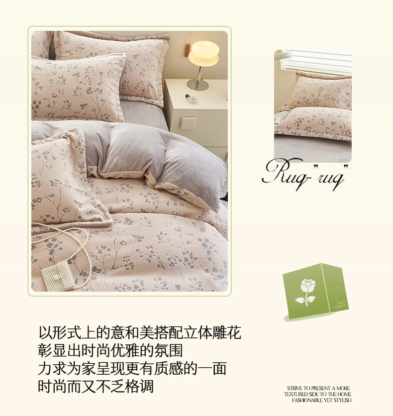 商品名称:2024新款A类立体雕花四件套 春日花园-浅咖