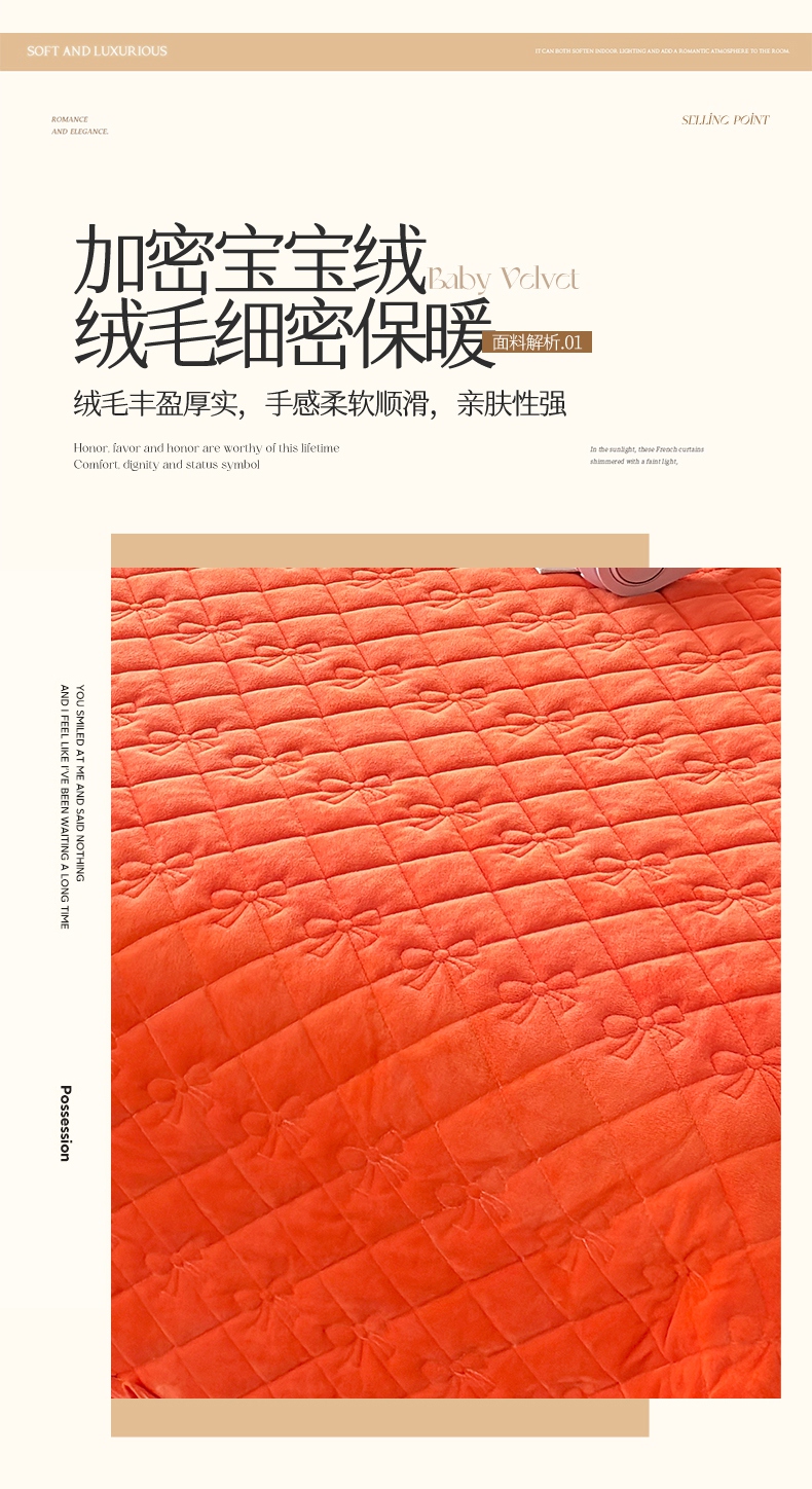 • 91家纺网 家纺一手货源 找家纺 2024新款A类依恋宝宝绒韩版床盖 美人橙