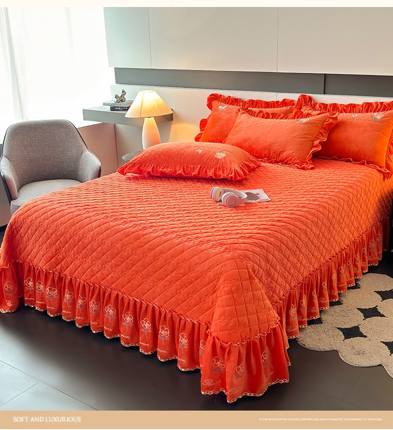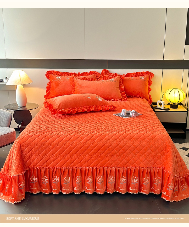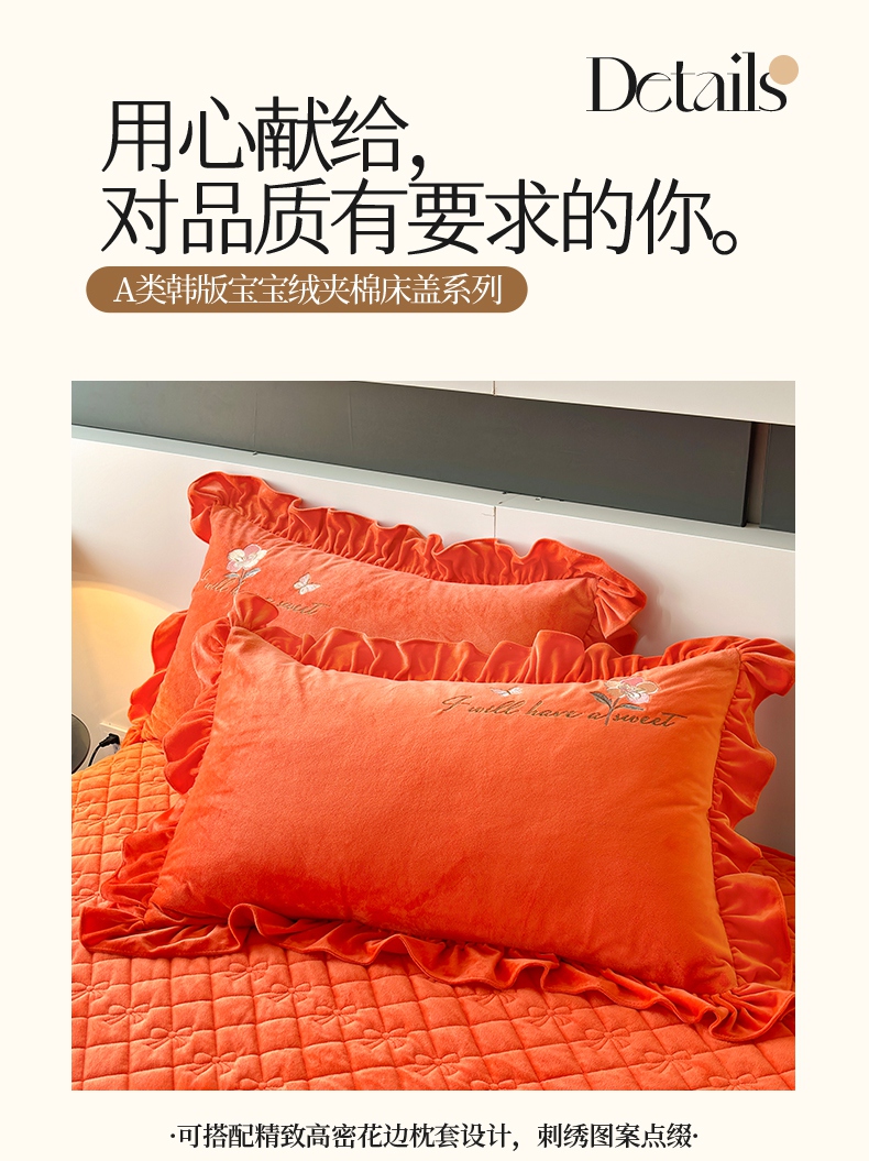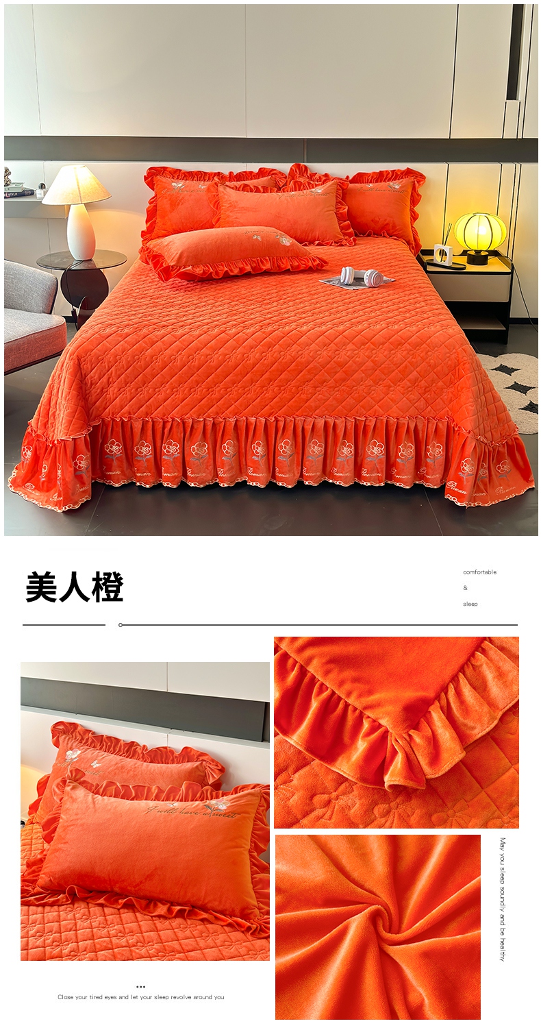 2024新款A类依恋宝宝绒韩版床盖 美人橙