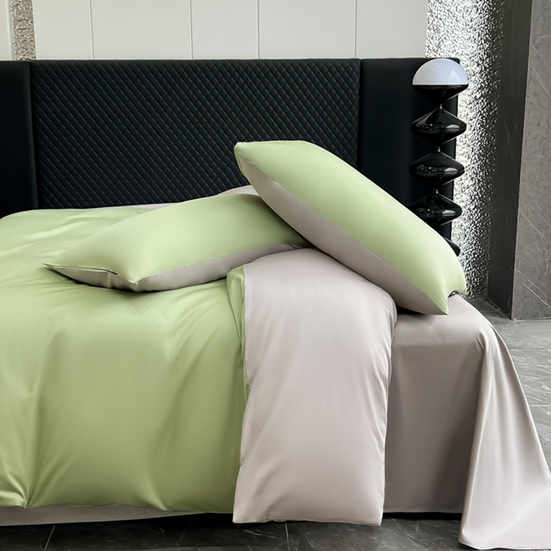 • 91家纺网 家纺一手货源 找家纺 家居1号家纺 2024新款50双股新疆长绒棉纯色四件套单品系列-单床单 床单共享-苹果绿+太空灰