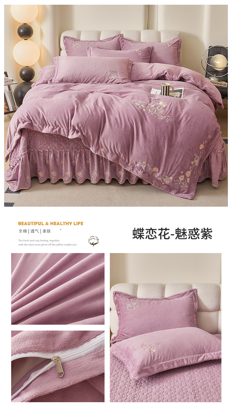 当前位置: 91家纺网 > 商品网购 > 床品套件 > 四件套 > 其它四件套 > 2024新款锦肤绒蝶恋花床盖款四件套 蝶恋花-魅惑紫