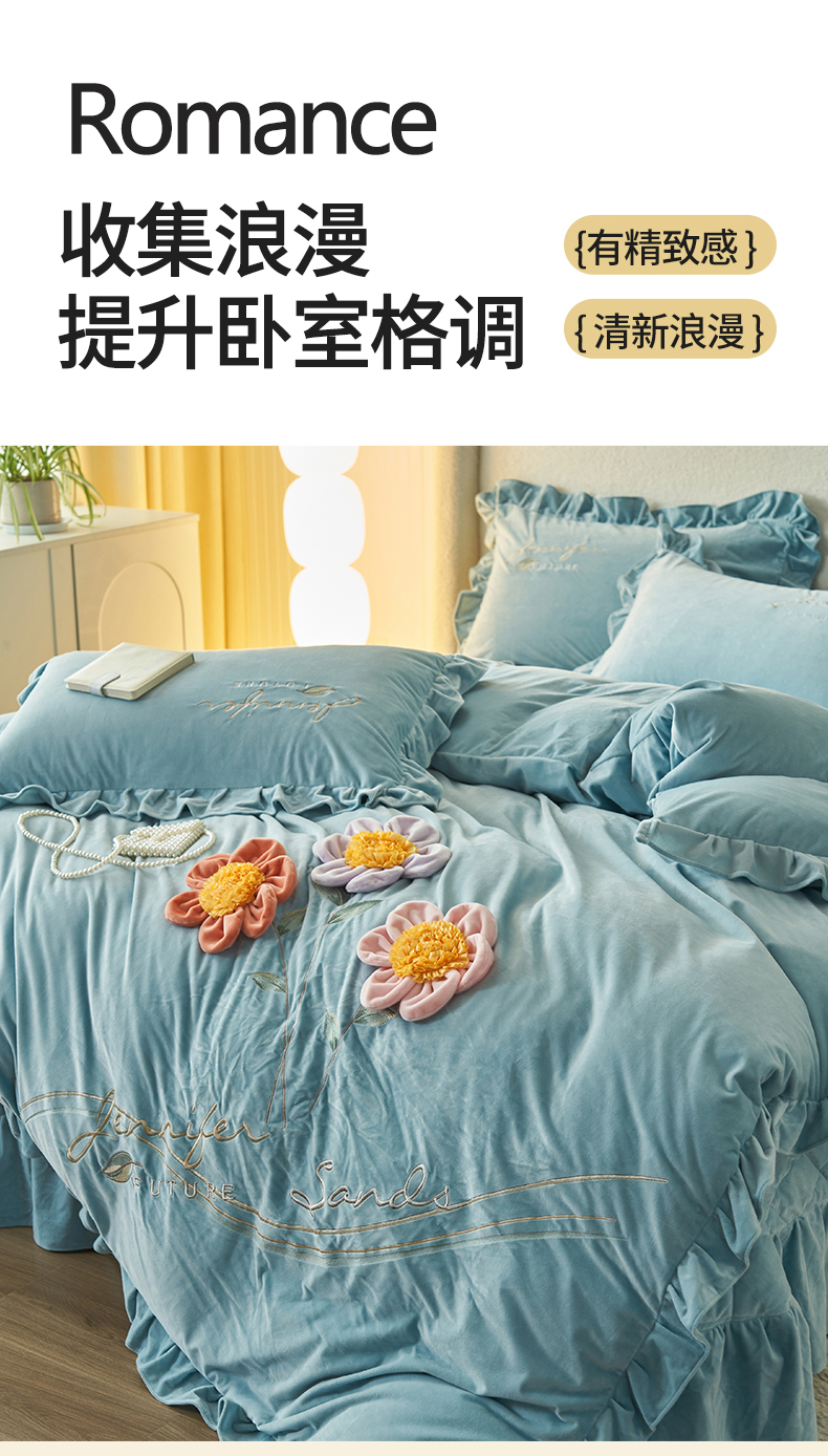 (总)恒爱 2022秋冬水晶绒翩翩花舞夹棉床裙四件套,大红色,豆沙红,橄榄绿,公主粉,桔色,咖啡色,孔雀绿,拉菲红,罗兰紫,玫红色,美人玉,米白色,米驼色,抹茶绿,浅灰色,紫色