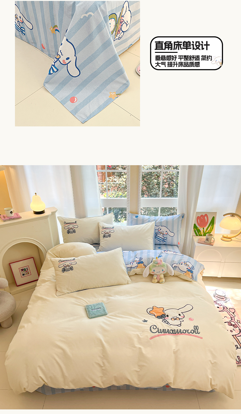 雅居纺家纺 2024新款全棉磨毛三丽鸥库洛米正版授权四件套 星星玉桂狗