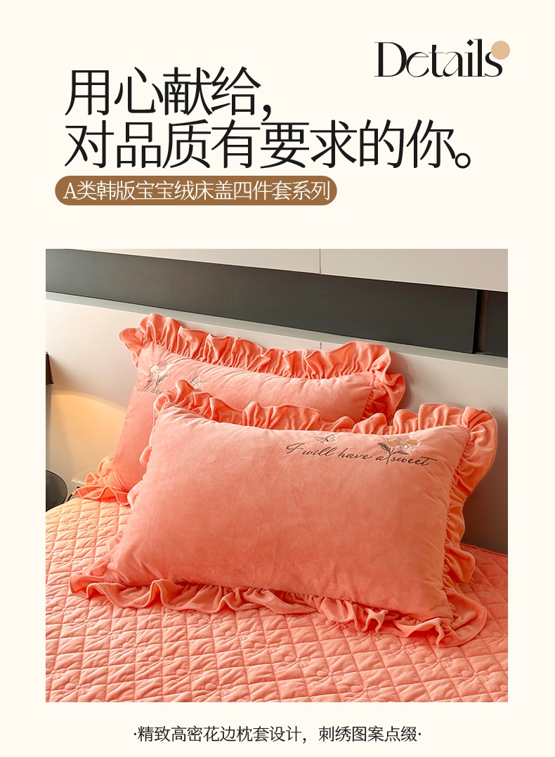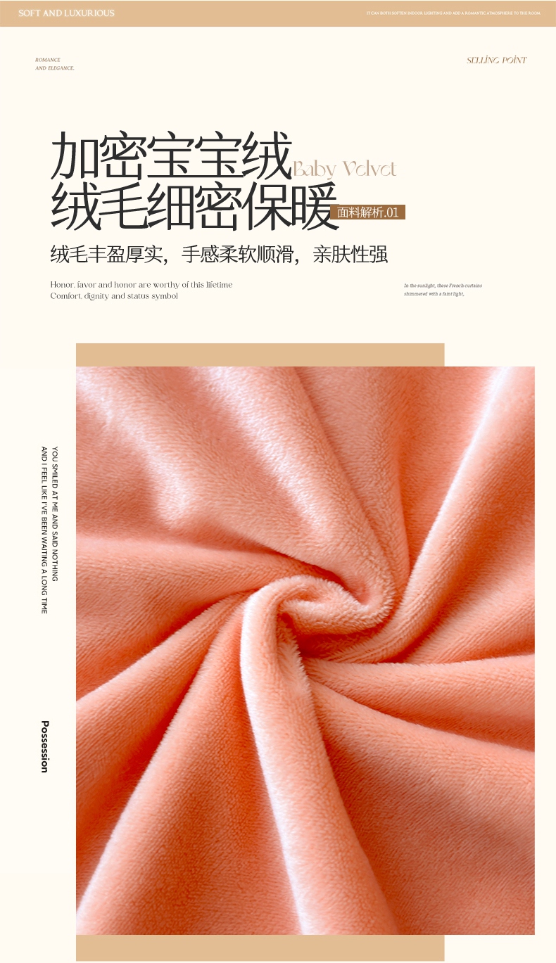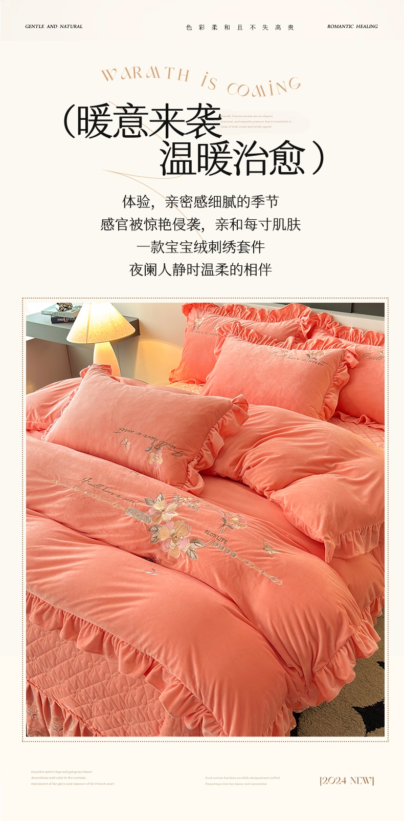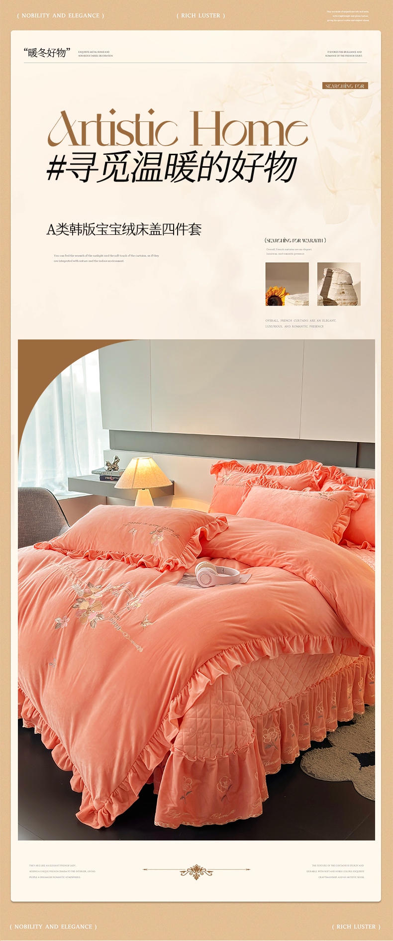 当前位置: 91家纺网 > 商品网购 > 床品套件 > 四件套 > 宝宝绒四件套 > 2024新品A类依恋宝宝绒韩版四件套 柔粉玉